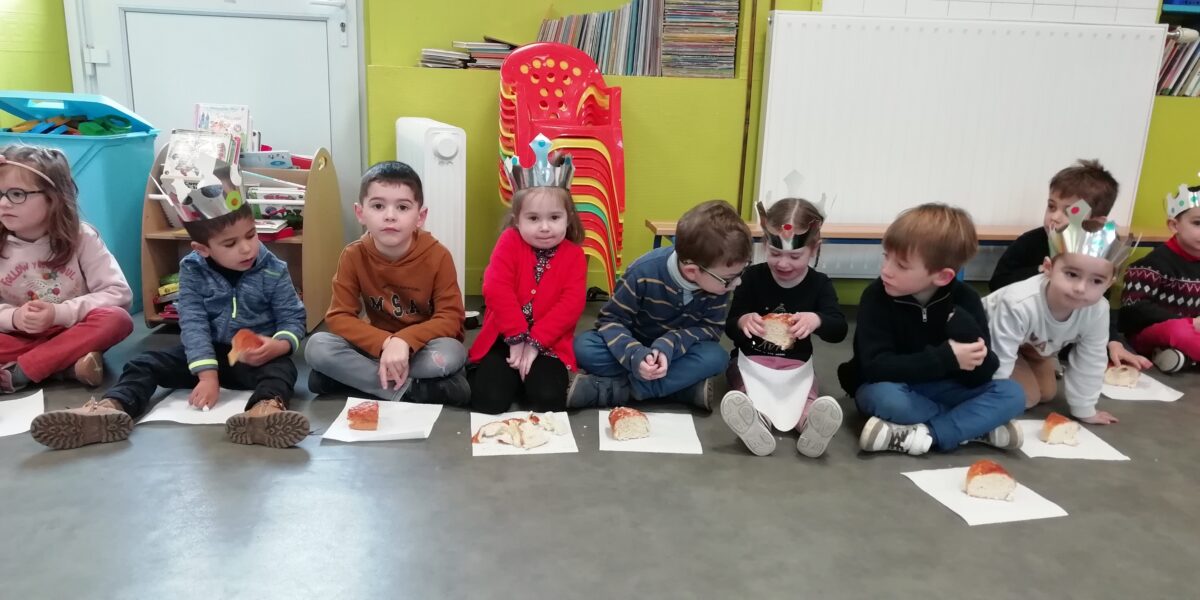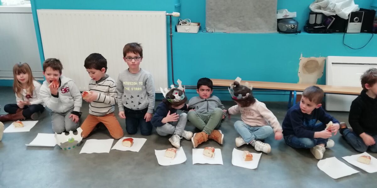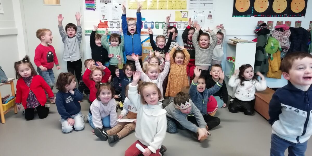 Ce vendredi, après vérification dans les deux classes par un groupe d’élèves, nous avons donc été invités à partager la galette des MS/GS. Nous avons chanté, dansé puis dégusté de bonnes galettes, c’était un très bon moment tout ensemble !