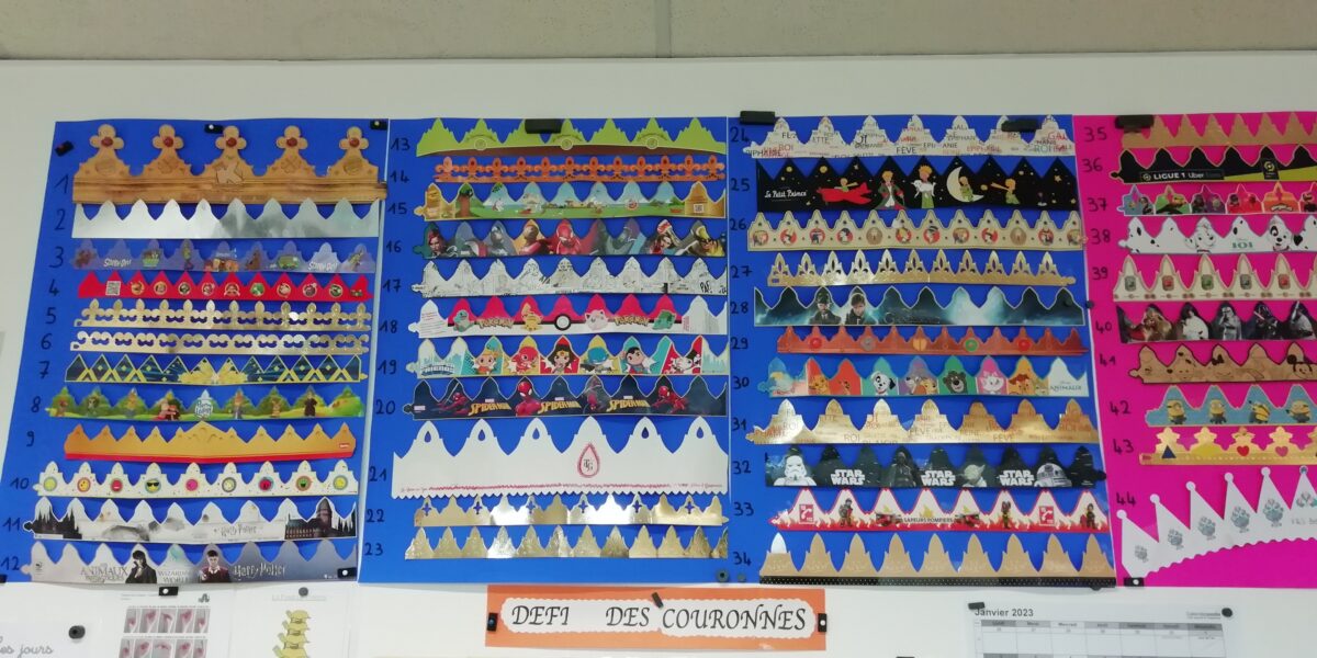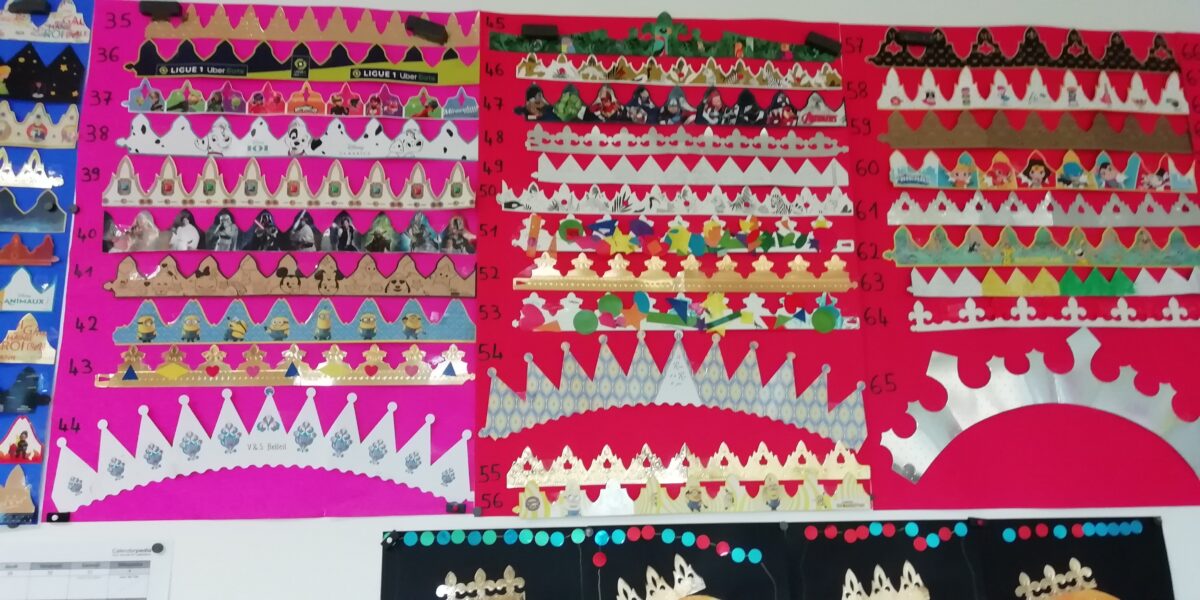 Durant tout le mois de Janvier les deux classes maternelles se sont lancées un grand défi : trouver et rapporter à l’école le maximum de couronnes mais toutes différentes les unes des autres !