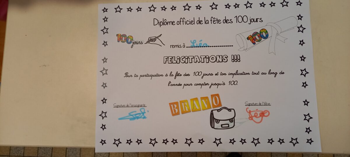 Mardi 4 avril, nous avons fêté notre 100ème jour d’école. Au programme de la journée : des défis sportifs, des défis mathématiques, du comptage, du bricolage, du partage et de la bonne humeur !