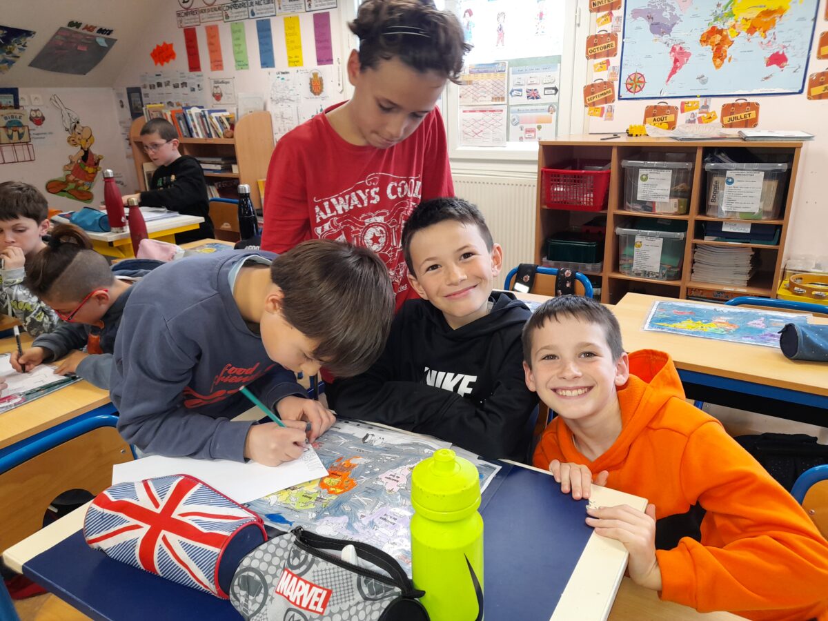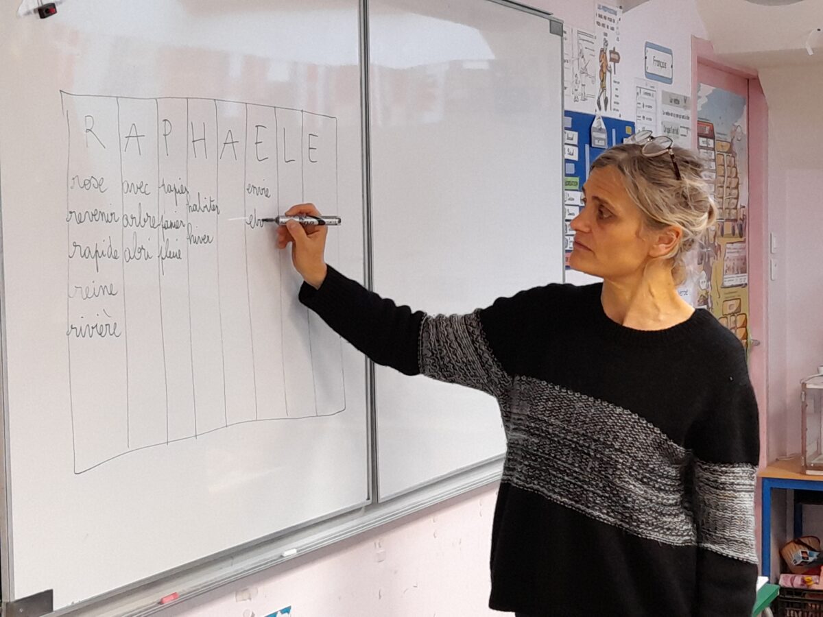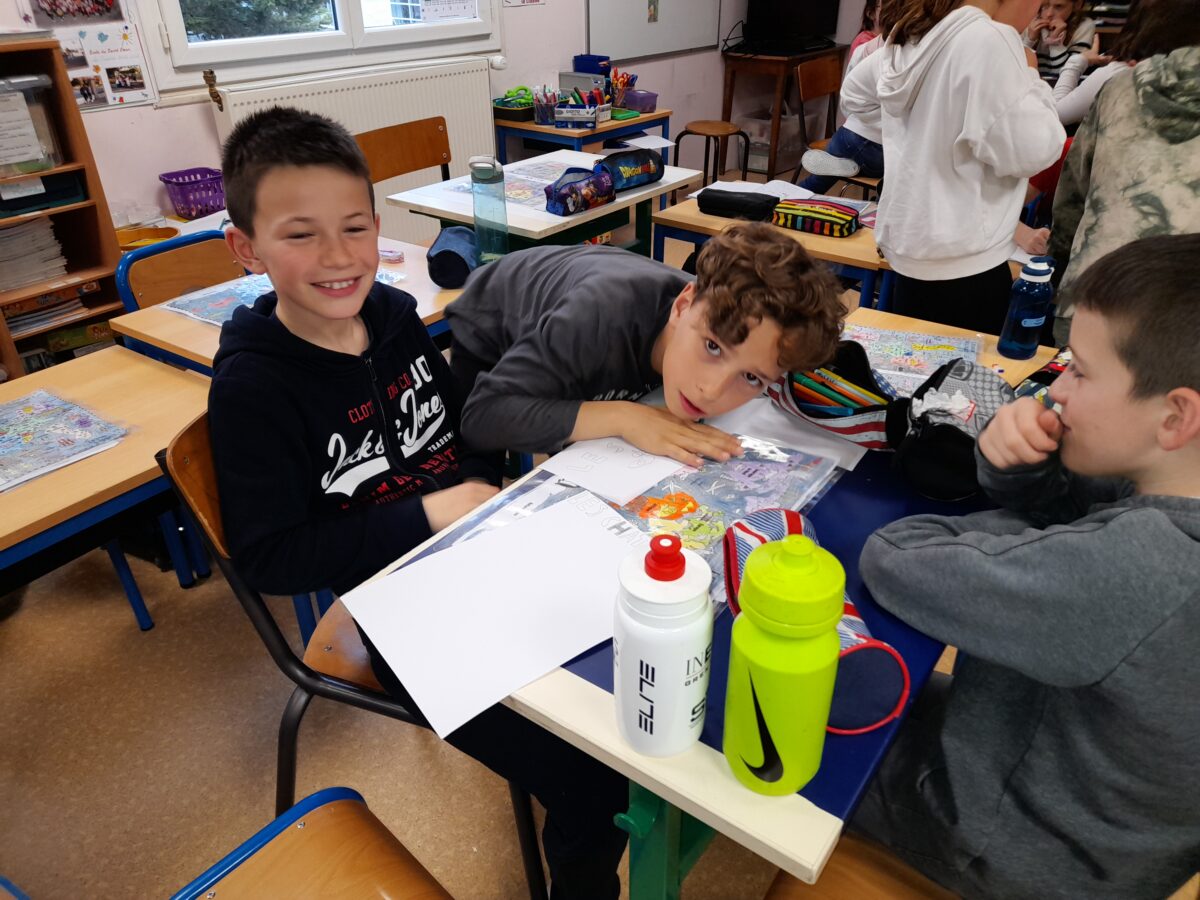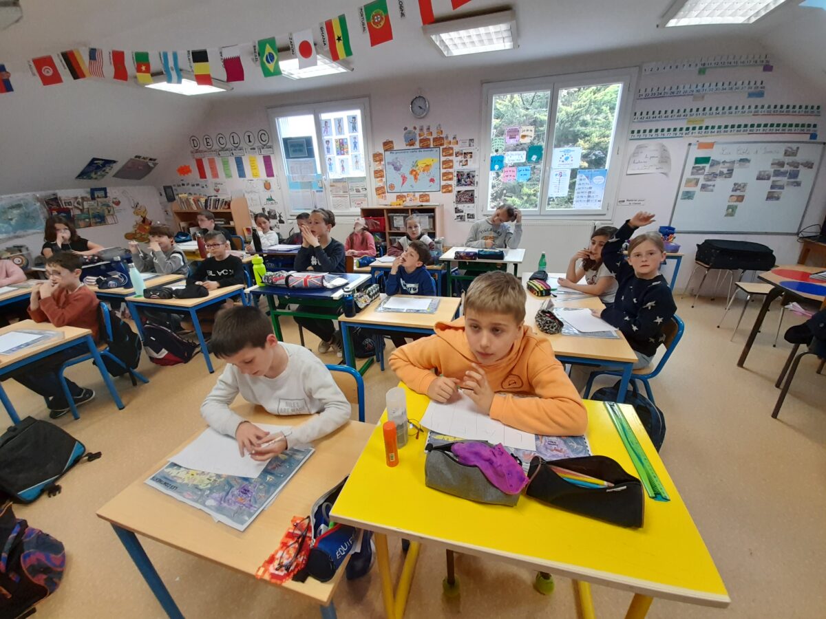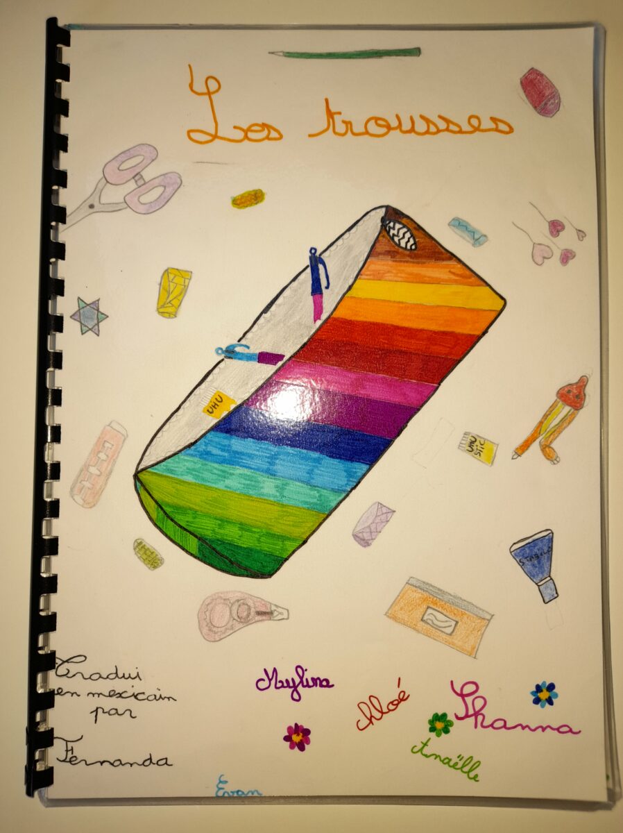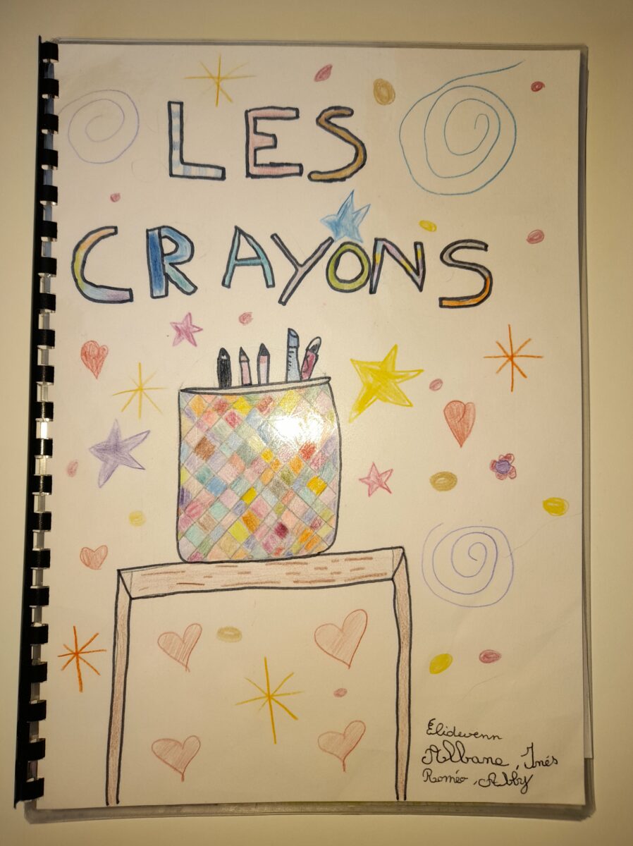 Jeudi 30 mars, Raphaël Frier a passé l’après-midi dans la classe des CM1. Après s’être présentée, elle a porté beaucoup d’intérêt aux productions réalisées par les enfants. Ces derniers lui ont expliqué le travail que nous avions fait en classe depuis décembre : lecture de ses albums avec recherche du genre littéraire, débat sur chaque thème abordé dans les histoires, notre coup de coeur sur l’album « Les chaises » (ce livre présente des poèmes sur les différentes chaises qui existent et sont traduits en arabe). Les enfants ont donc choisi un mot, puis ont écrit un poème-devinette sur un objet précis. C’est ainsi que les enfants ont confectionné 5 livres, chacun portant sur un mot. Tout ce travail a été exposé lors du week-end du salon du livre.