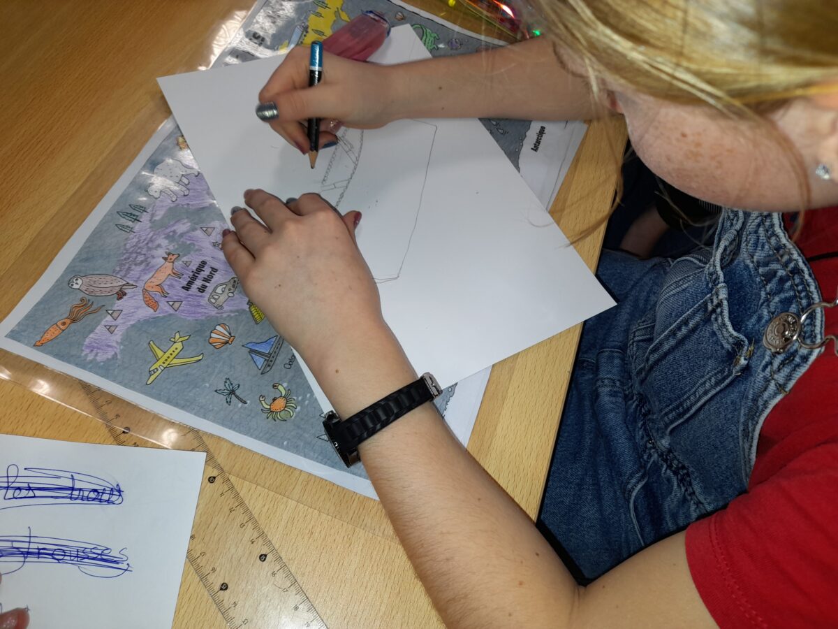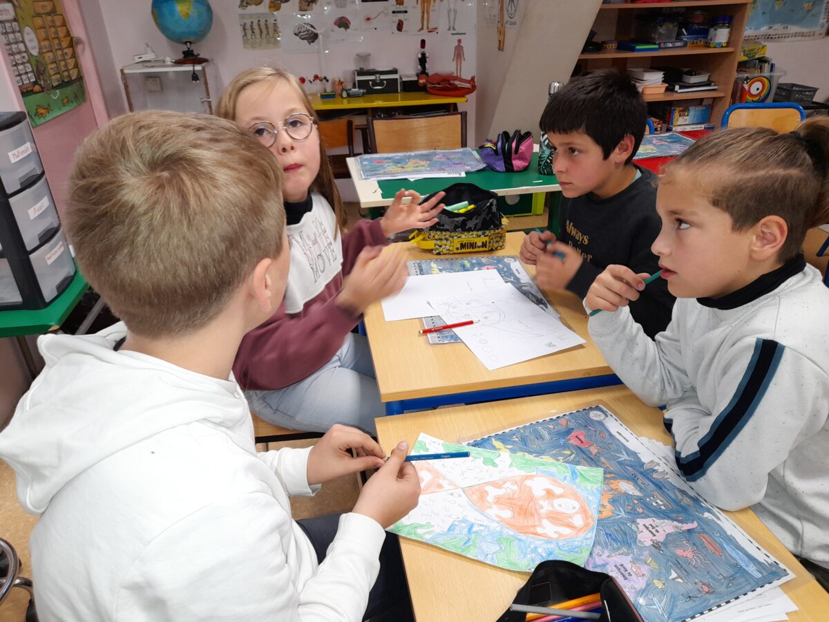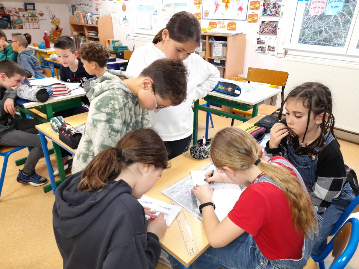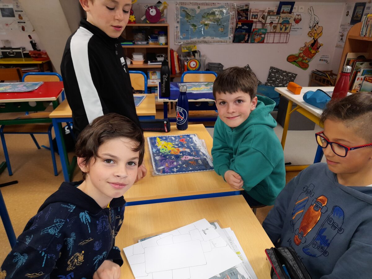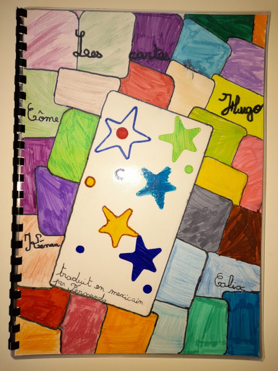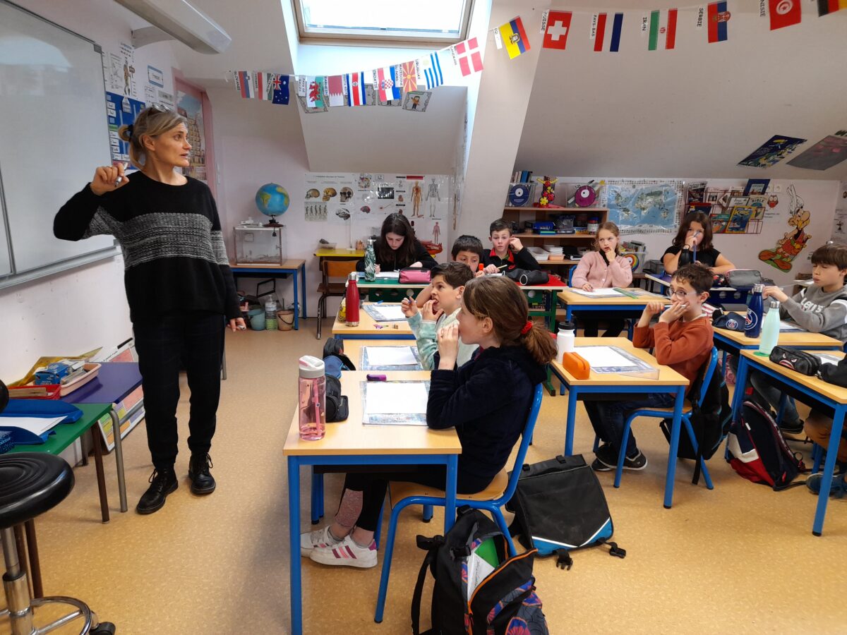 Jeudi 30 mars, Raphaël Frier a passé l’après-midi dans la classe des CM1. Après s’être présentée, elle a porté beaucoup d’intérêt aux productions réalisées par les enfants. Ces derniers lui ont expliqué le travail que nous avions fait en classe depuis décembre : lecture de ses albums avec recherche du genre littéraire, débat sur chaque thème abordé dans les histoires, notre coup de coeur sur l’album « Les chaises » (ce livre présente des poèmes sur les différentes chaises qui existent et sont traduits en arabe). Les enfants ont donc choisi un mot, puis ont écrit un poème-devinette sur un objet précis. C’est ainsi que les enfants ont confectionné 5 livres, chacun portant sur un mot. Tout ce travail a été exposé lors du week-end du salon du livre.