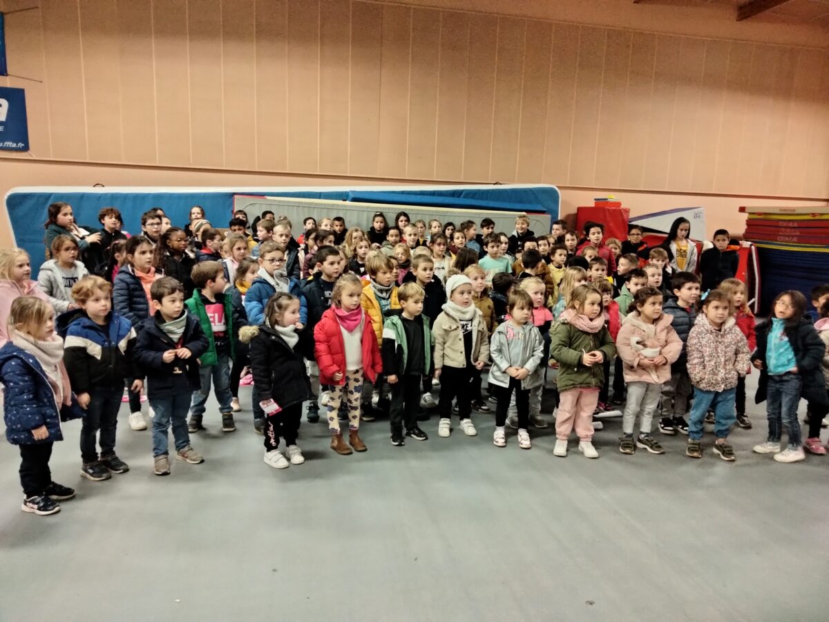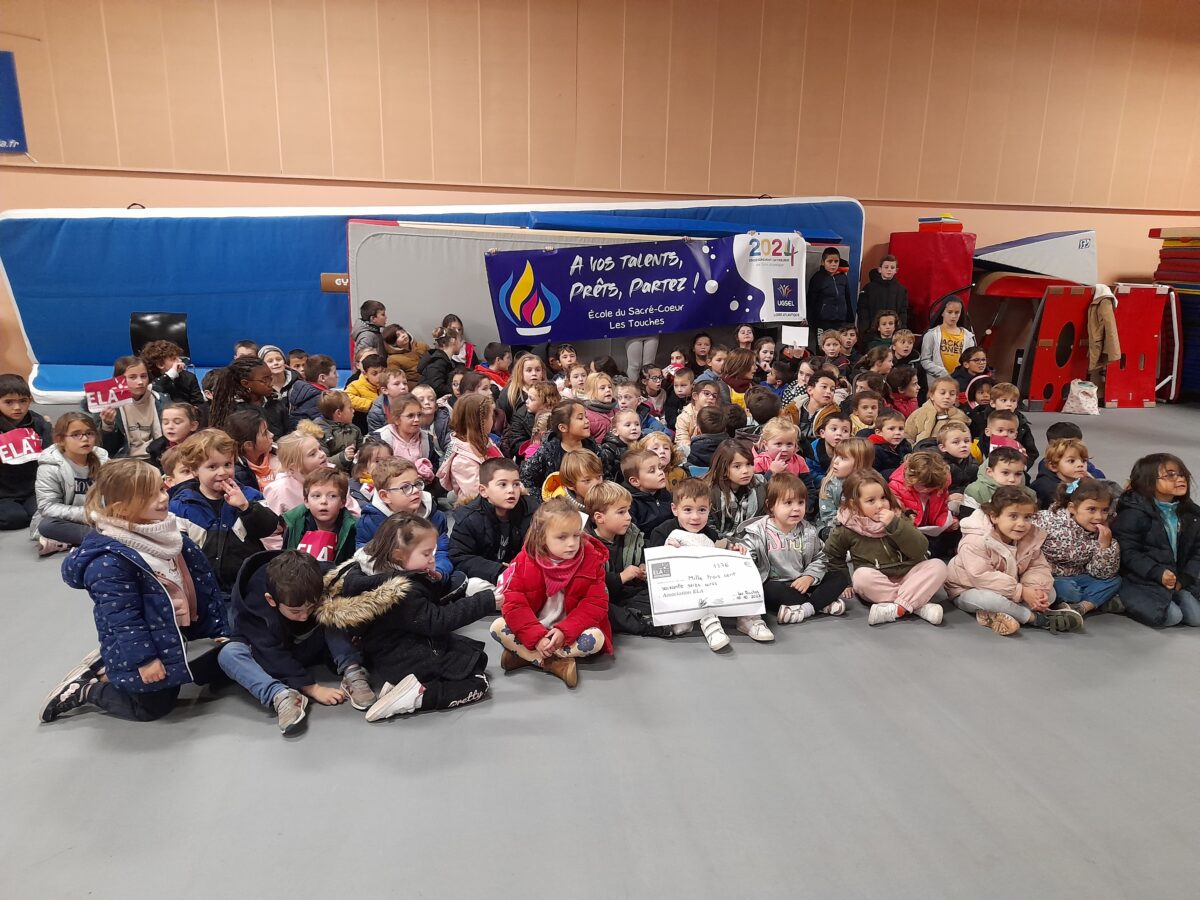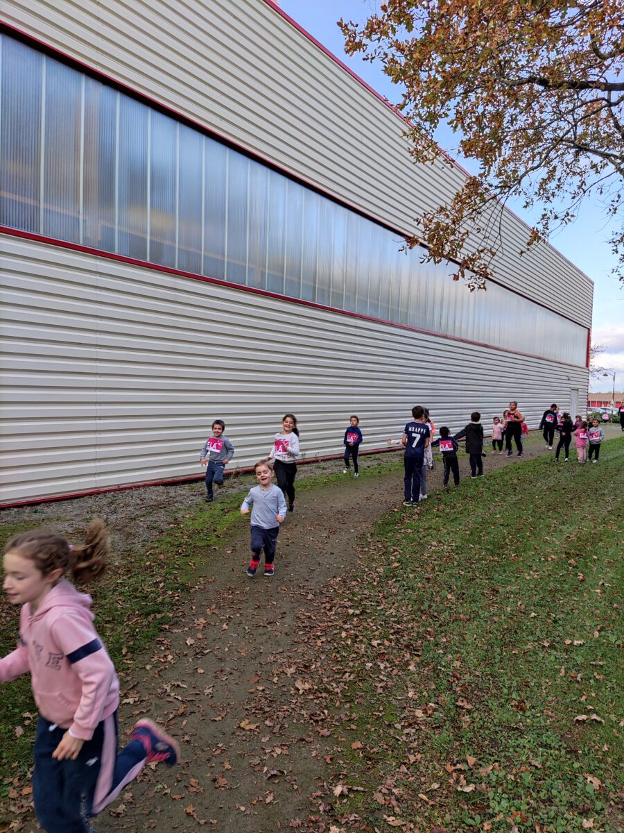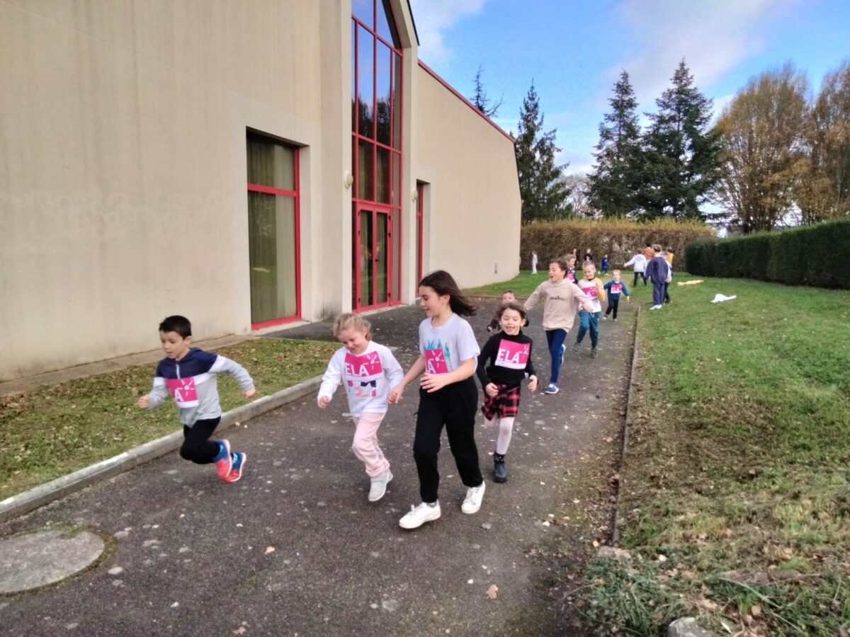 Vendredi 24 novembre, tous les élèves ont participé à une course de solidarité pour l’association ELA. Petits et grands l’ont bien compris, certains enfants n’ont pas la chance de pouvoir courir alors, nous, nous l’avons fait pour eux. Nous en avons profité pour réaliser le 1er défi de notre année olympique. Il fallait que nous fassions 2024 tours de salle de sport. Non seulement nous avons réussi notre défi mais nous avons même fait mieux puisque nous avons réalisé 2113 tours de salle !