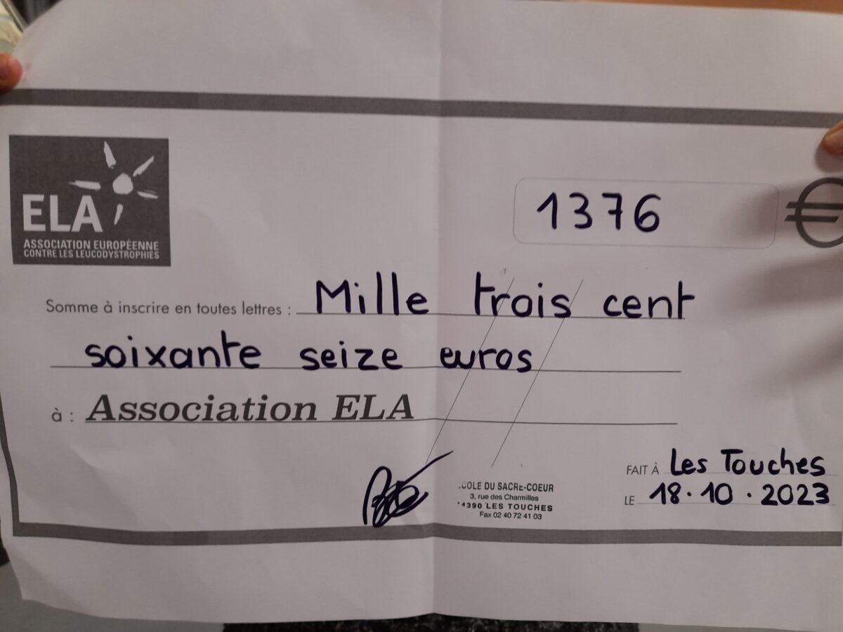 Nous nous sommes ensuite regroupés dans la salle de sport pour chanter ensemble la chanson d’ELA et découvrir la somme récoltée ! Nous avons pu envoyer à ELA la somme de 1376 €.