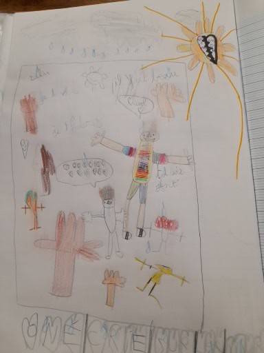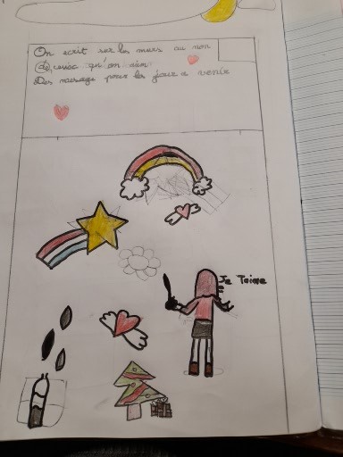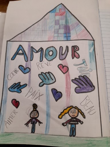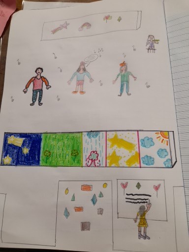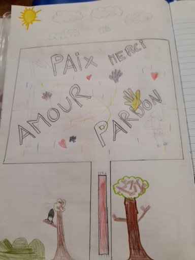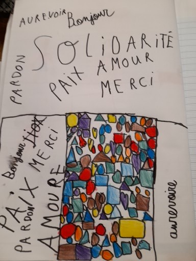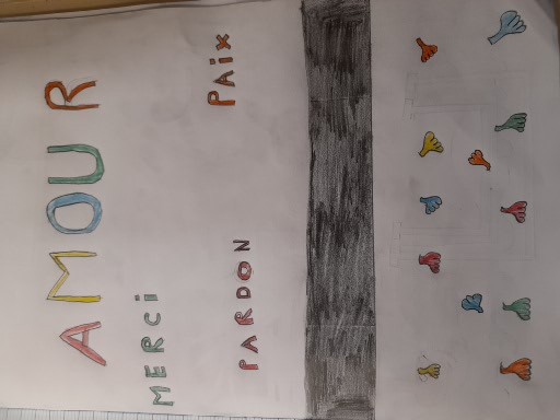 Voici quelques dessins des enfants sur le chant final : « On écrit sur les murs ».