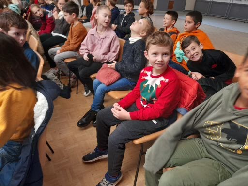Pour finir, vendredi 22 décembre une animation de Noël a été proposée par la paroisse dans l’église. Les CE2-CM1 ont partagé ce moment avec les CE1-CE2. Les enfants en ont profité pour admirer la crèche.