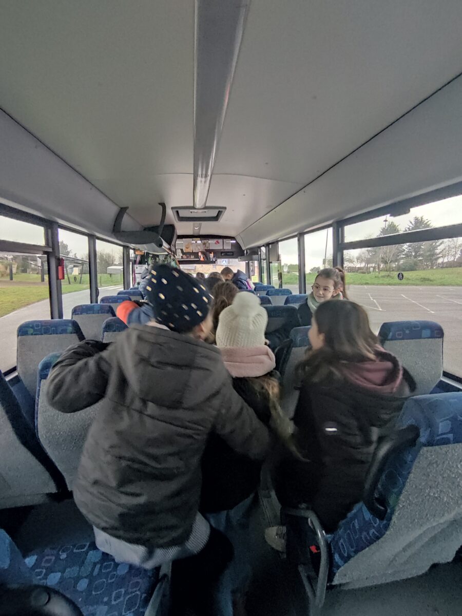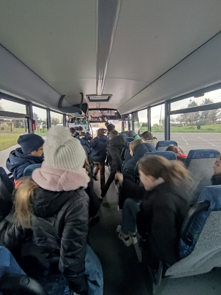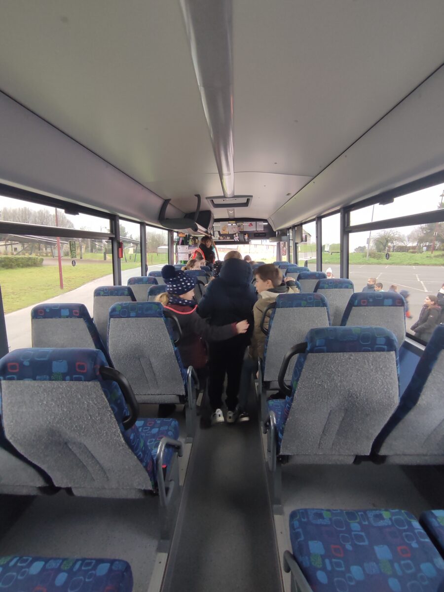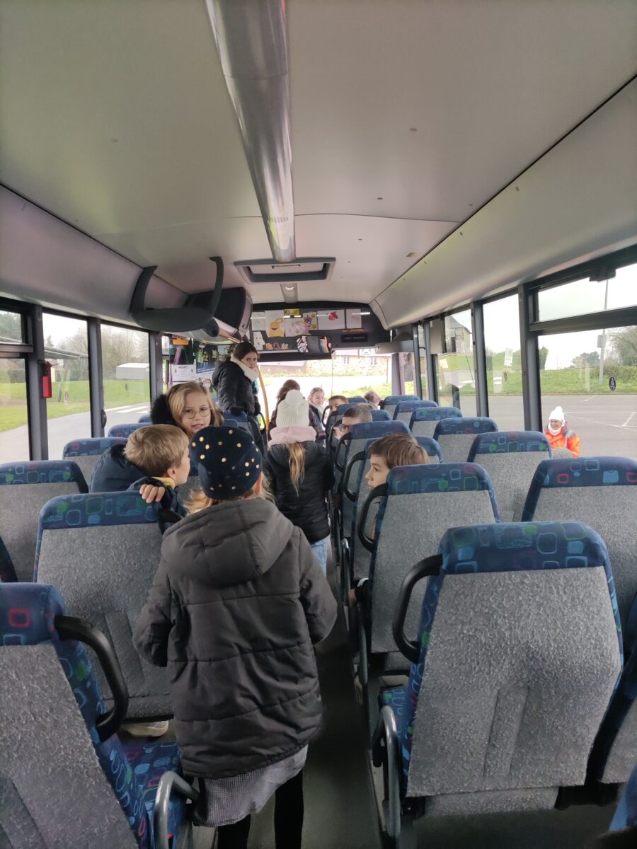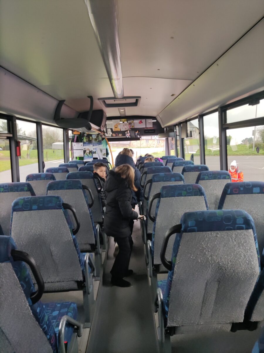Aujourd’hui, lundi 15 janvier, nous nous sommes rendus sur le parking de la salle polyvalente. Pendant une heure, Charlène, responsable de la CCEG pour le transport, est venue pour nous parler des règles de notre futur transport pour la 6ème: le car scolaire. Nous avons bien retenu que leur priorité c’est notre sécurité. Alors à chaque montée de car nous devons porter notre gilet, présenter notre carte de transport et attacher notre ceinture lors de nos déplacements le matin et le soir. Nous avons discuté des différentes façons de sortir du car quand il y a un problème grave.. nous avons aussi parlé des angles morts. Enfin nous avons terminé par un exercice d’évacuation du car: nous devions sortir en moins de 30 secondes. Nous avons réussi en 27 secondes avec la technique donnée par Charlène.