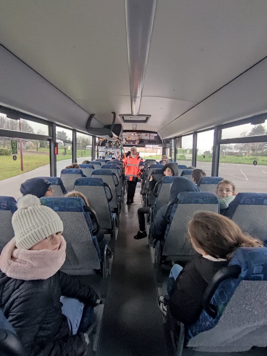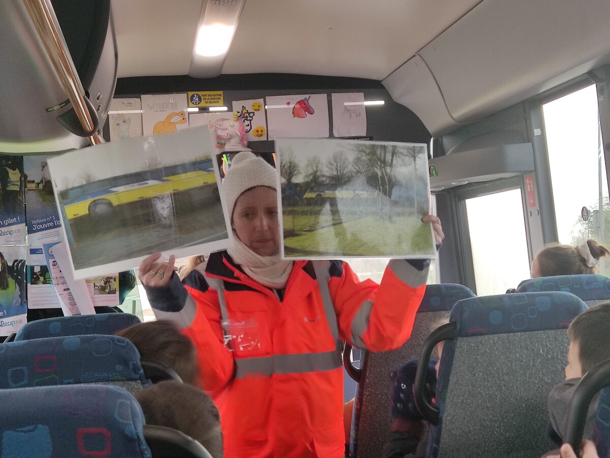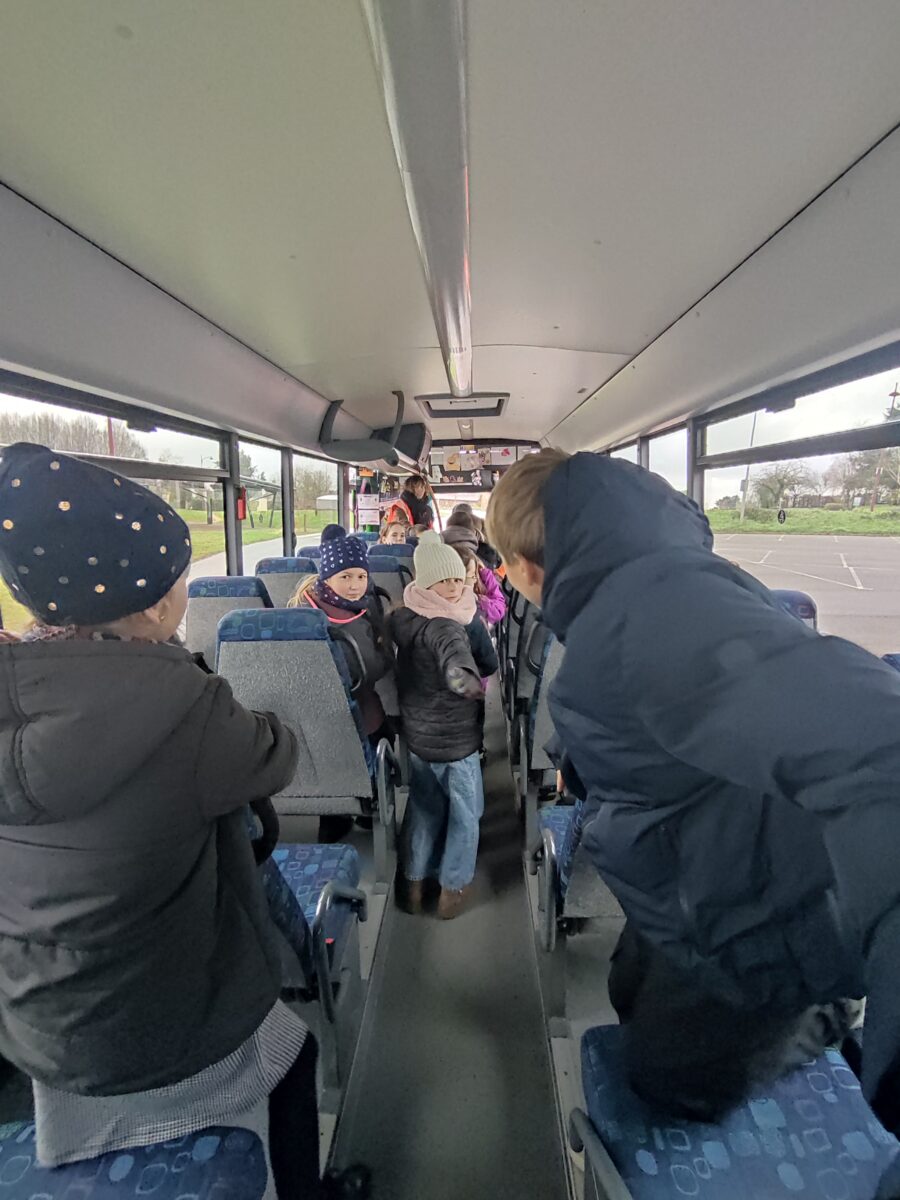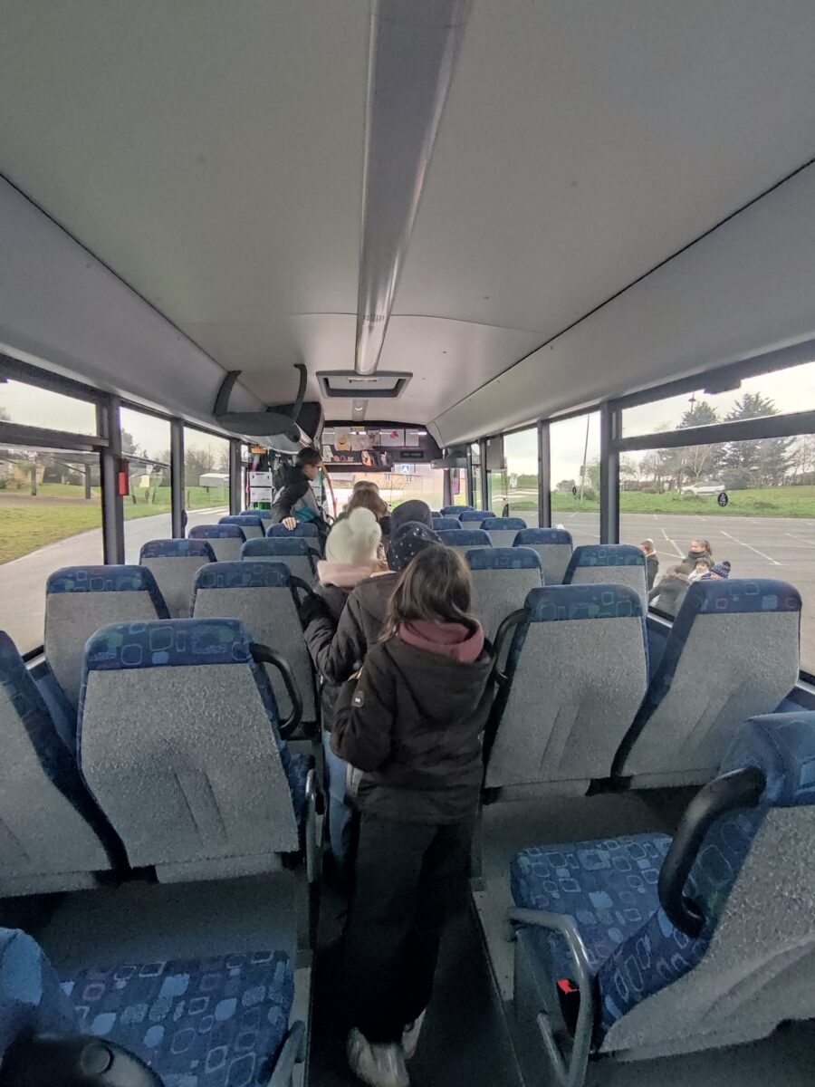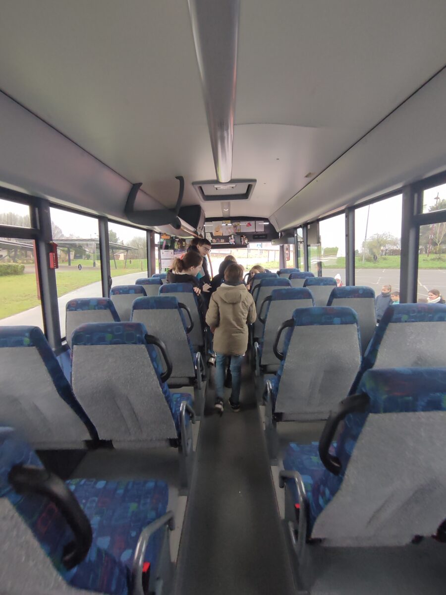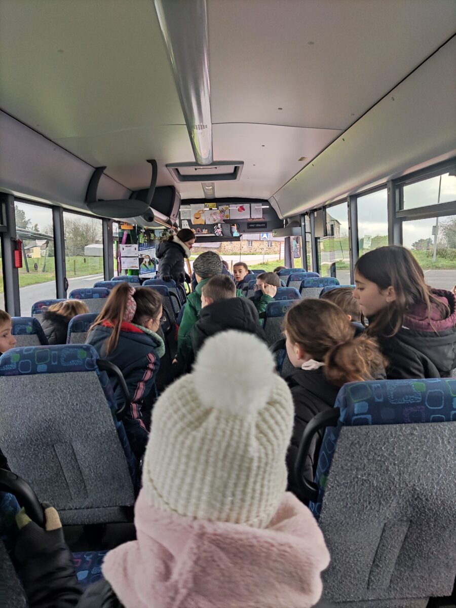 Aujourd’hui, lundi 15 janvier, nous nous sommes rendus sur le parking de la salle polyvalente. Pendant une heure, Charlène, responsable de la CCEG pour le transport, est venue pour nous parler des règles de notre futur transport pour la 6ème: le car scolaire. Nous avons bien retenu que leur priorité c’est notre sécurité. Alors à chaque montée de car nous devons porter notre gilet, présenter notre carte de transport et attacher notre ceinture lors de nos déplacements le matin et le soir. Nous avons discuté des différentes façons de sortir du car quand il y a un problème grave.. nous avons aussi parlé des angles morts. Enfin nous avons terminé par un exercice d’évacuation du car: nous devions sortir en moins de 30 secondes. Nous avons réussi en 27 secondes avec la technique donnée par Charlène.