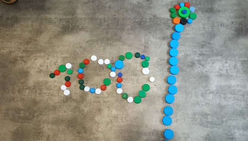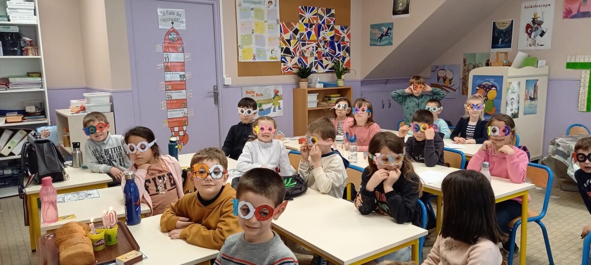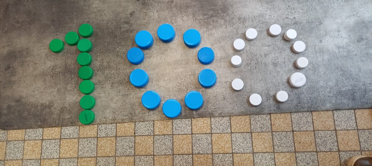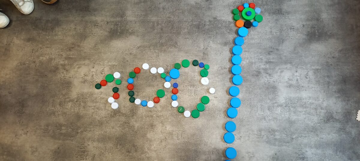 Cela a été l’occasion de relever plusieurs défis : réaliser des puzzles de 100 pièces et des constructions avec 100 objets ou bouchons, trouver 100 noms d’animaux, former le nombre 100 avec nos corps, faire une course en se relayant 100 fois ! Les enfants ont aussi fabriqué les lunettes du 100ème jour. Pour terminer cette journée, ils ont dégusté un bon goûter après avoir soufflé les bougies du 100.