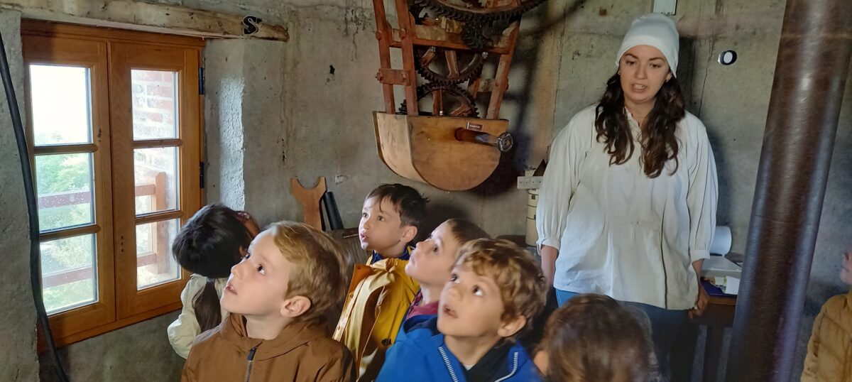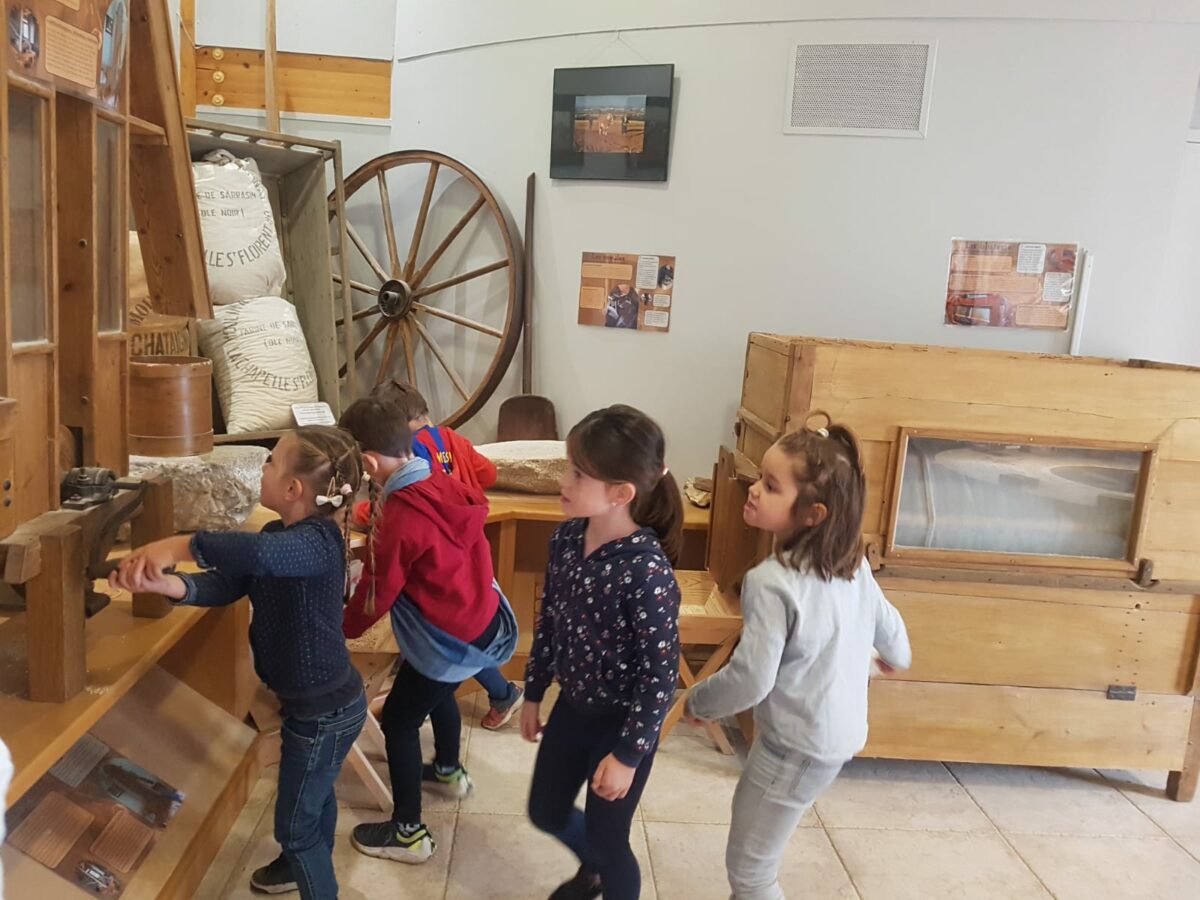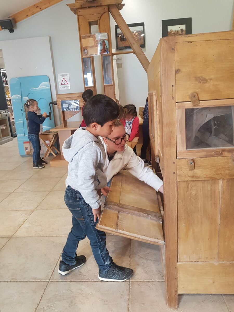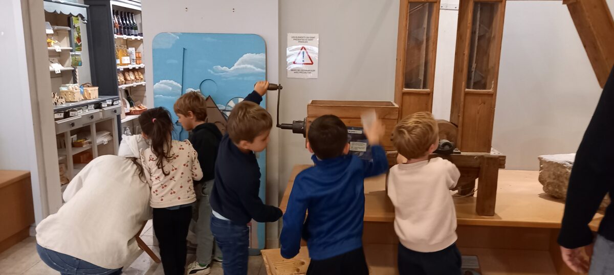 Vendredi 27 septembre, nous sommes allés visiter le moulin de l’Epinay. Malgré le mauvais temps, nous avons pleinement profité de cette journée. Nous sommes montés tout en haut du moulin au 4ème étage puis la meunière nous a expliqué les étapes de la fabrication de la farine. Nous avons également visité le musée et manipulé les différentes machines. L’après-midi, nous avons découvert et fabriqué différents types de farine. Nous avons rapporté de la farine de blé du moulin et nous allons confectionner des gâteaux en classe.