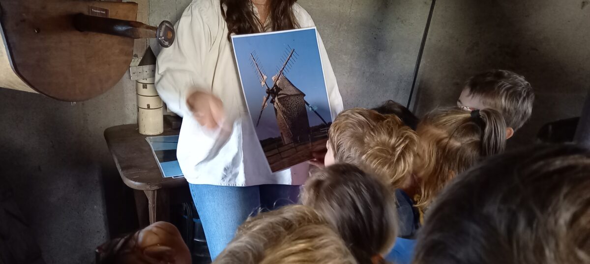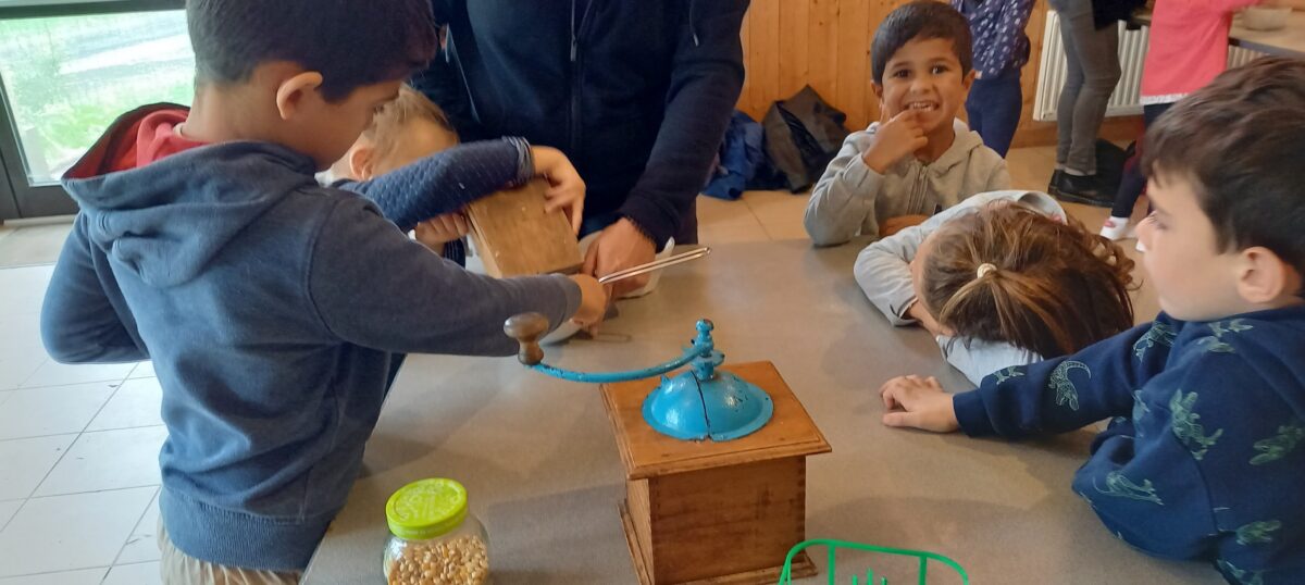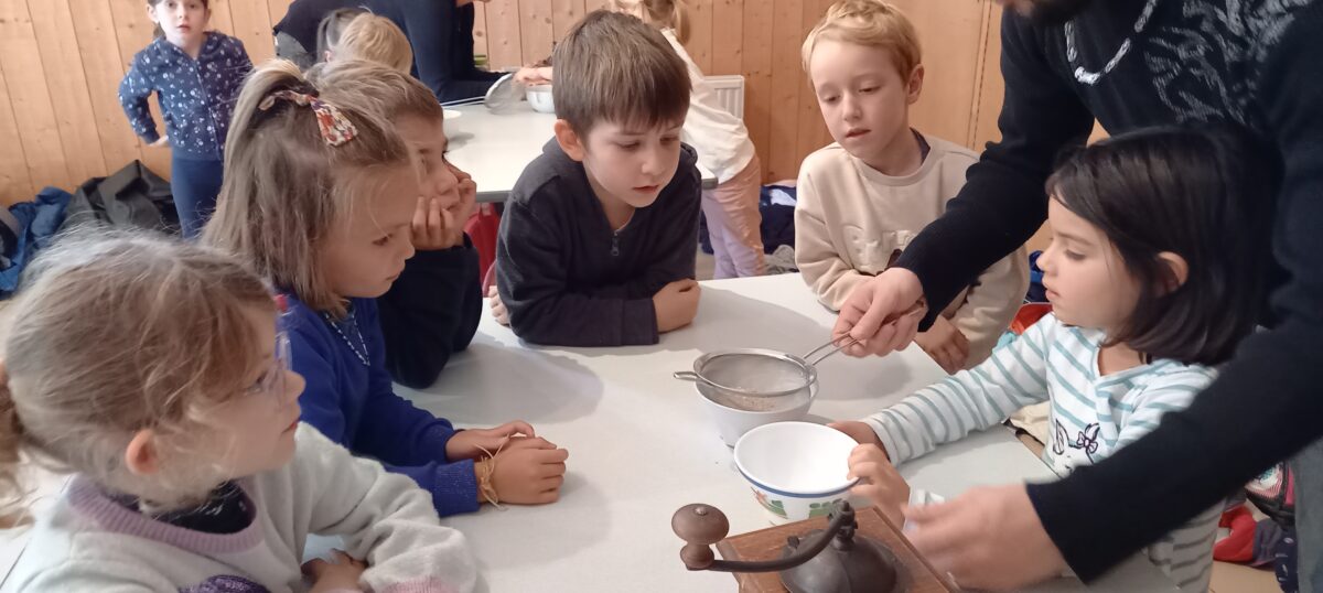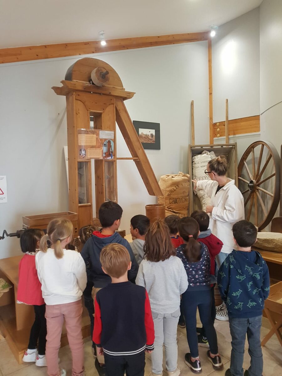 Vendredi 27 septembre, nous sommes allés visiter le moulin de l’Epinay. Malgré le mauvais temps, nous avons pleinement profité de cette journée. Nous sommes montés tout en haut du moulin au 4ème étage puis la meunière nous a expliqué les étapes de la fabrication de la farine. Nous avons également visité le musée et manipulé les différentes machines. L’après-midi, nous avons découvert et fabriqué différents types de farine. Nous avons rapporté de la farine de blé du moulin et nous allons confectionner des gâteaux en classe.