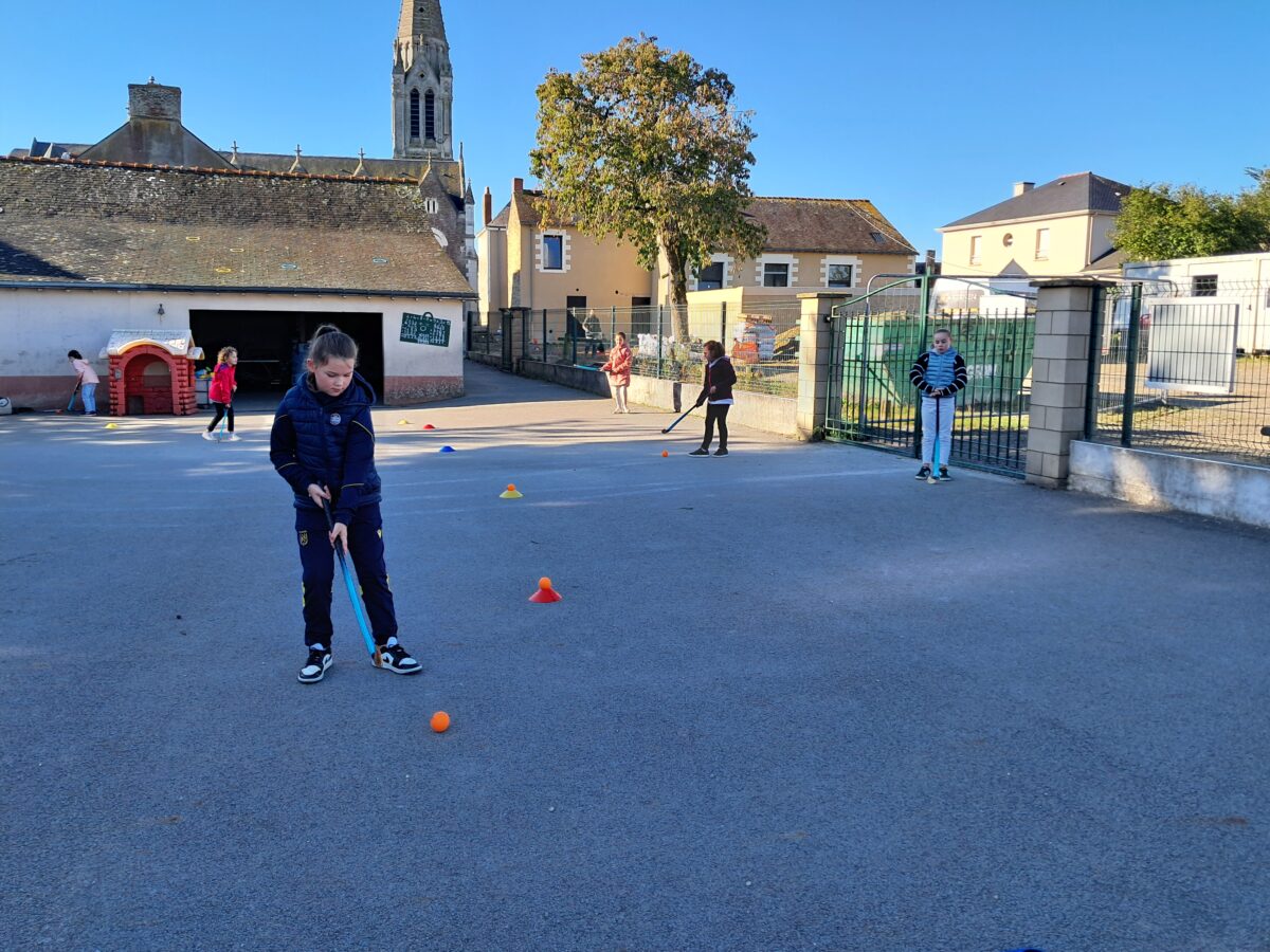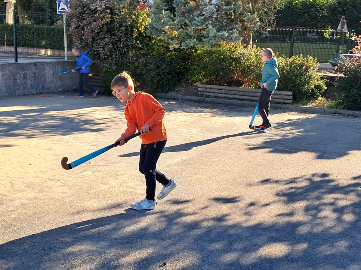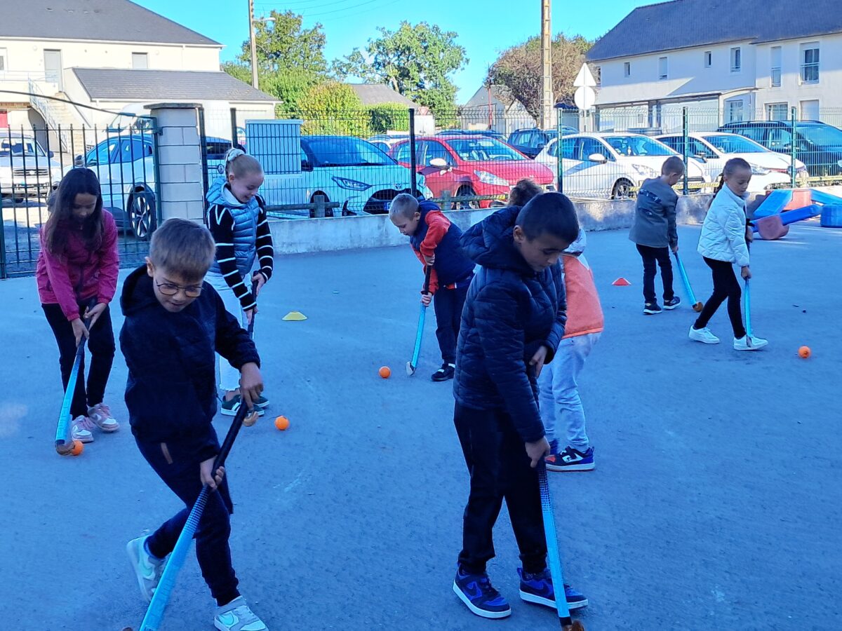 Durant le mois de septembre, les enfants en CE2-CM1 ont eu la chance de s’initier au hockey sur gazon avec Léo. Ils ont bénéficié de deux séances d’une heure pour s’essayer au hockey, qui n’est pas un sport si facile que cela. Ils ont appris quelques règles et à manipuler la crosse. Merci à Léo pour cette découverte, que les enfants ont beaucoup appréciée.