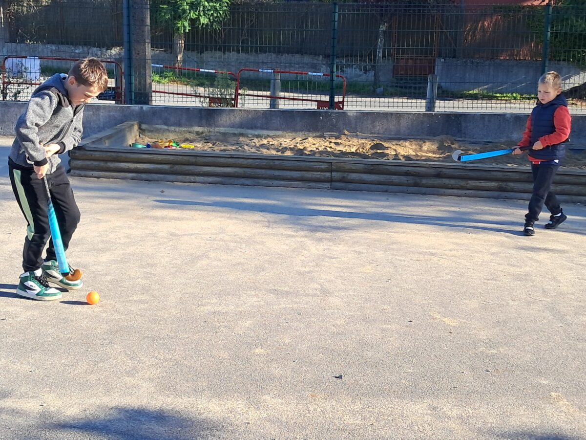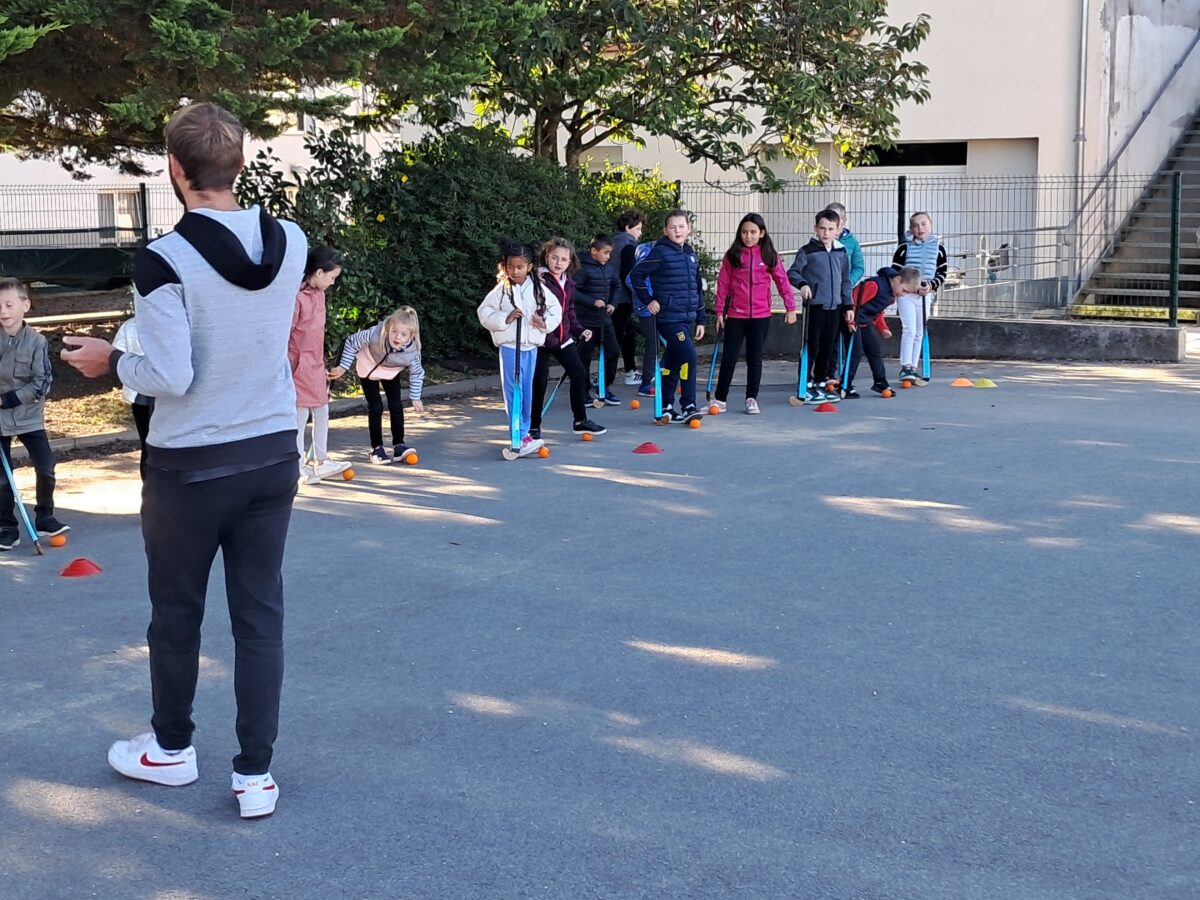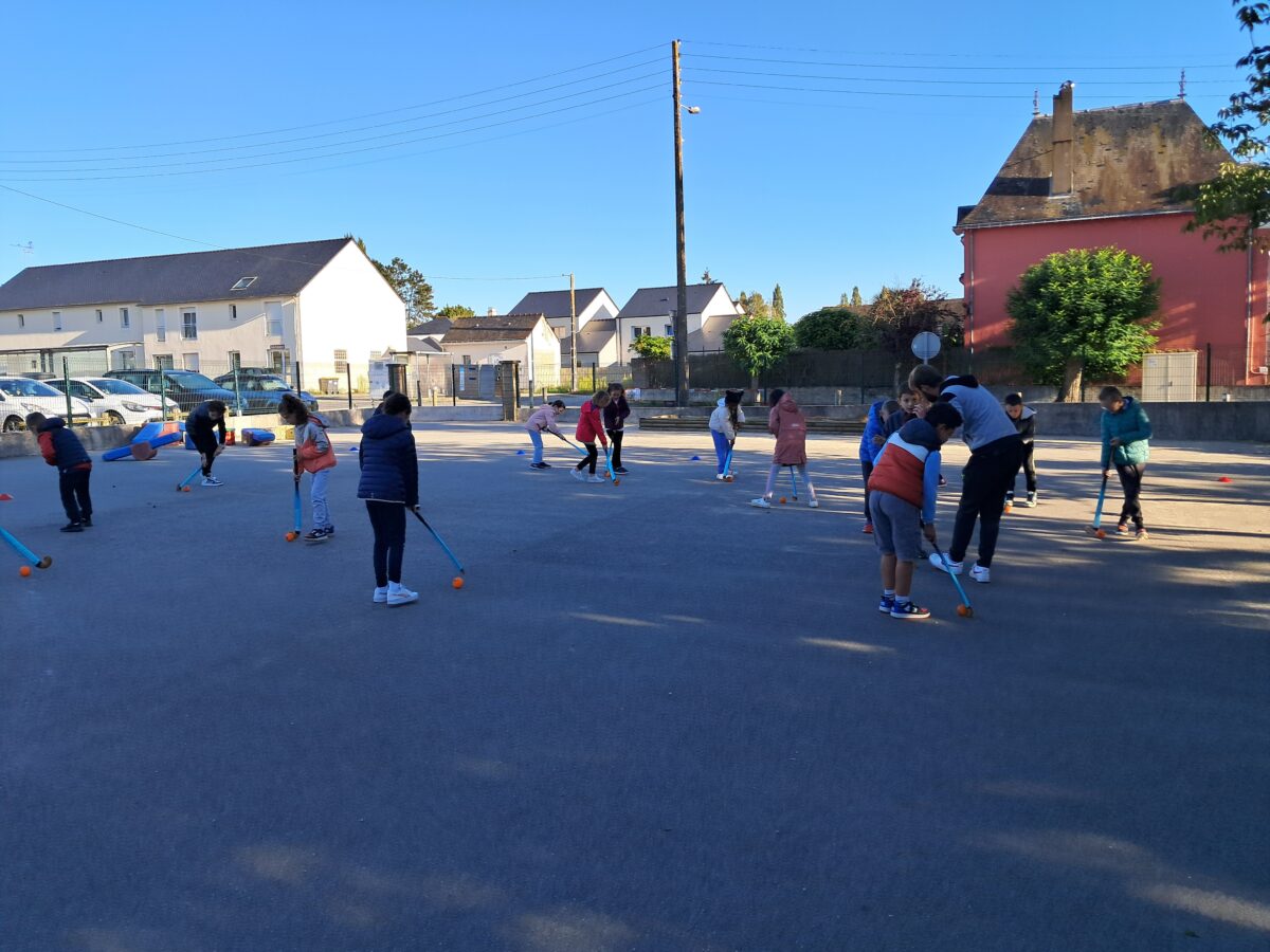 Durant le mois de septembre, les enfants en CE2-CM1 ont eu la chance de s’initier au hockey sur gazon avec Léo. Ils ont bénéficié de deux séances d’une heure pour s’essayer au hockey, qui n’est pas un sport si facile que cela. Ils ont appris quelques règles et à manipuler la crosse. Merci à Léo pour cette découverte, que les enfants ont beaucoup appréciée.