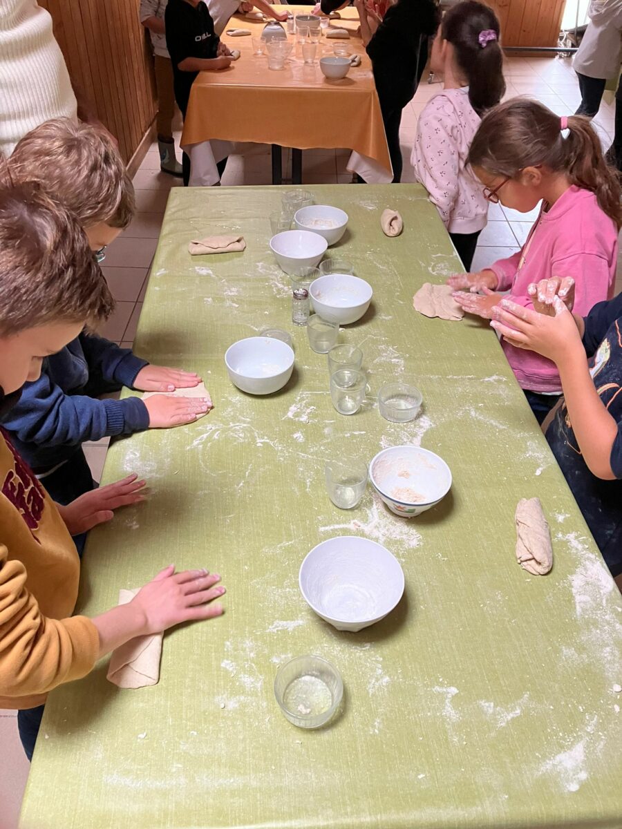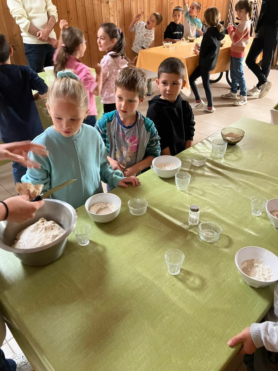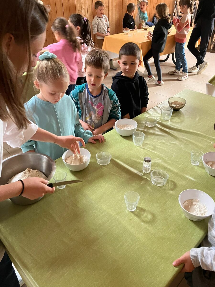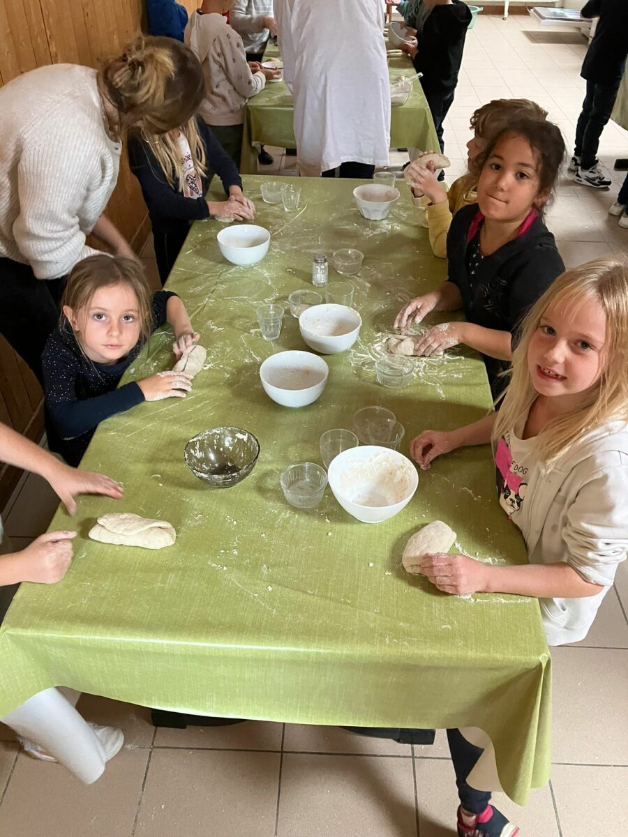 élaboration de notre propre pain le matin . Les enfants ont pu découvrir et utiliser les différents ingrédients nécessaires à la fabrication du pain tout en exprimant leur coté artistique.