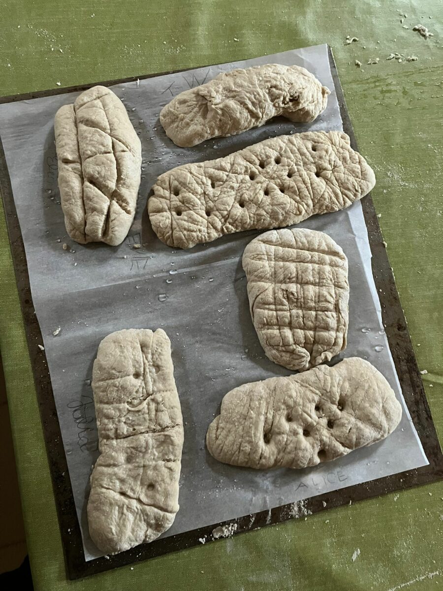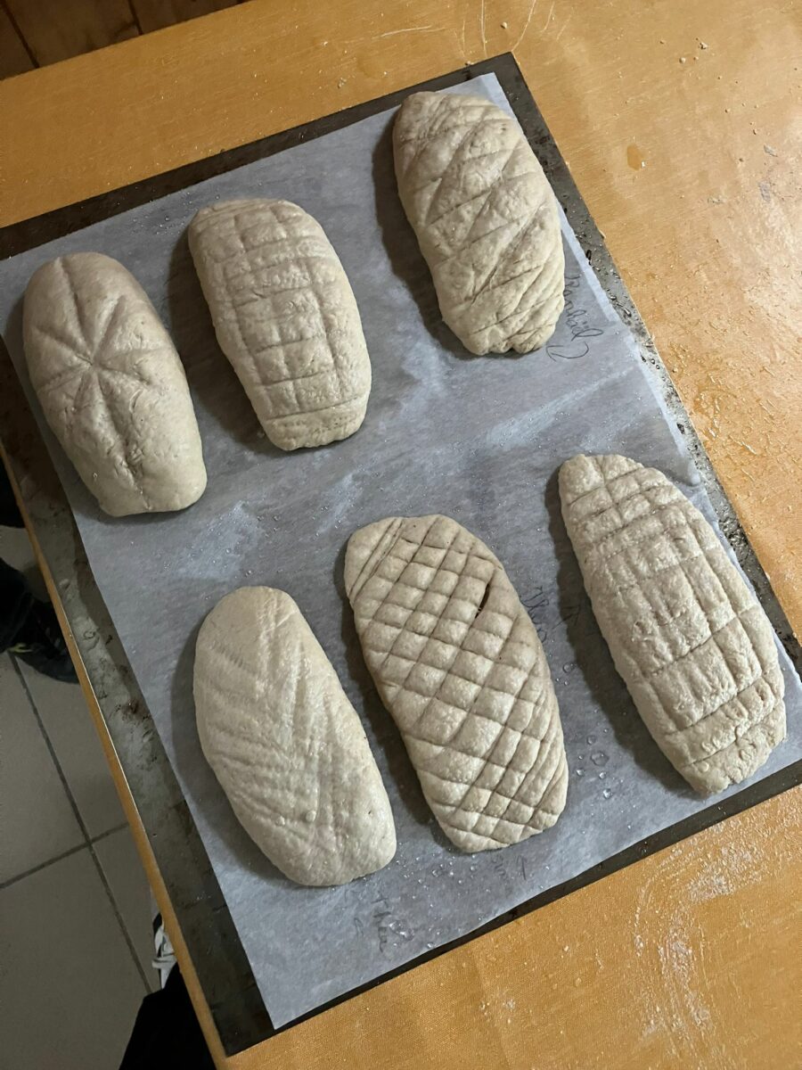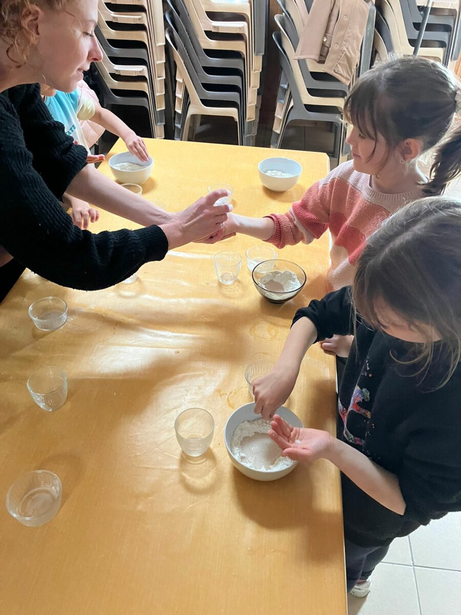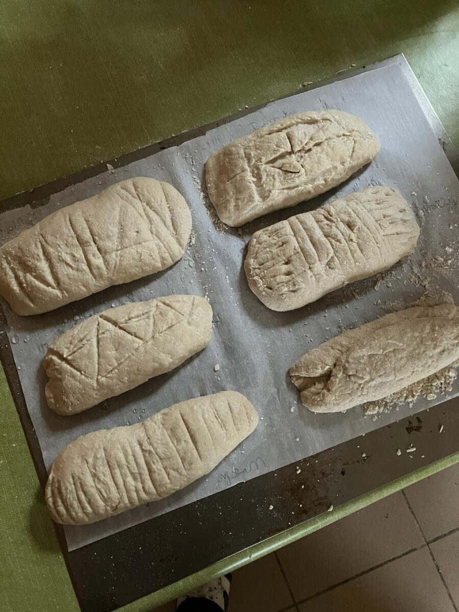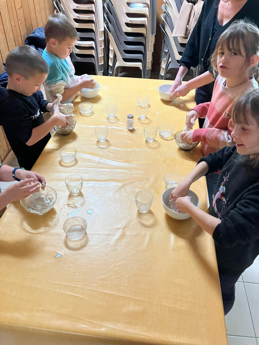 élaboration de notre propre pain le matin . Les enfants ont pu découvrir et utiliser les différents ingrédients nécessaires à la fabrication du pain tout en exprimant leur coté artistique.