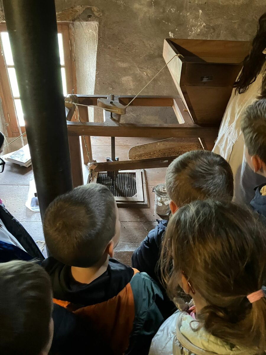 découverte du moulin et de son fonctionnement l’après-midi. Nous avons réalisé l’ascension du moulin pour mieux comprendre son organisation et les différents éléments qui le composent.