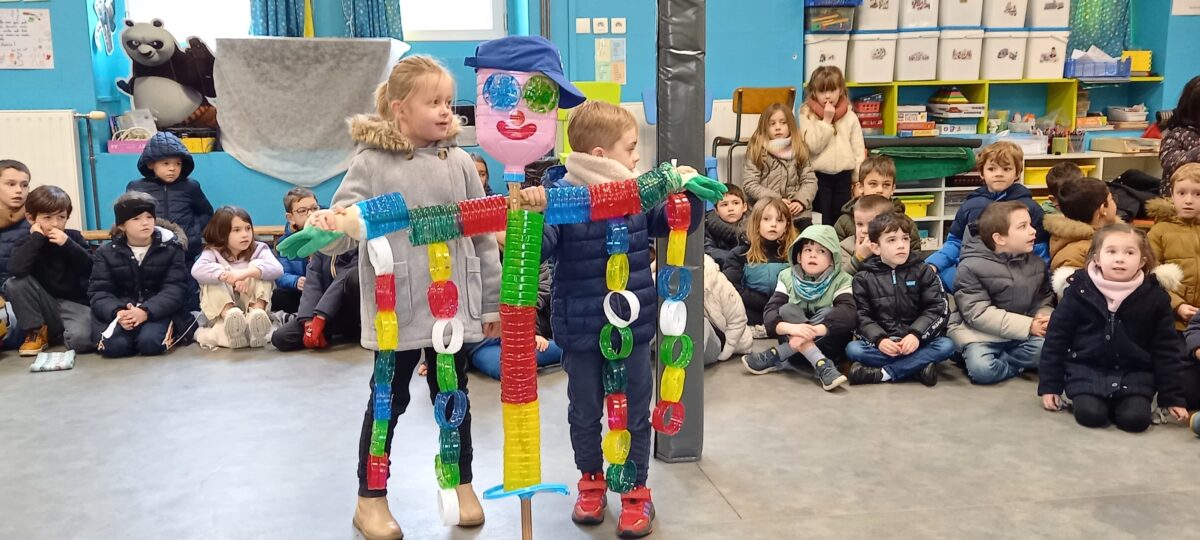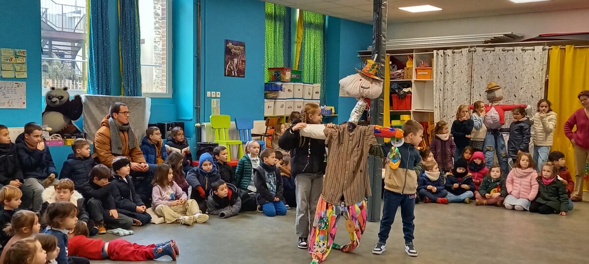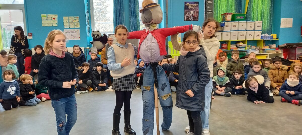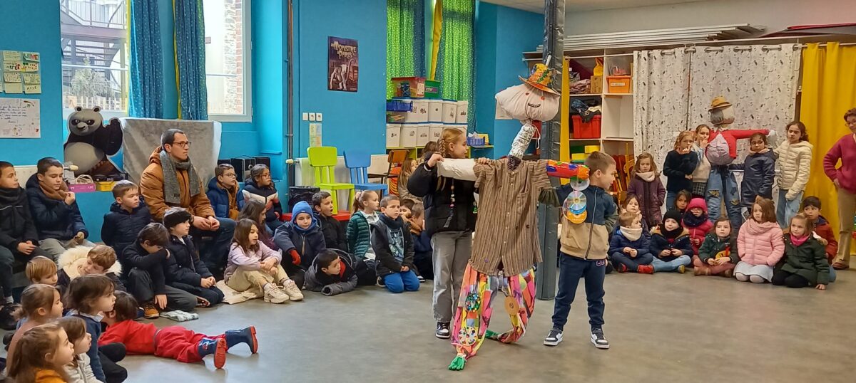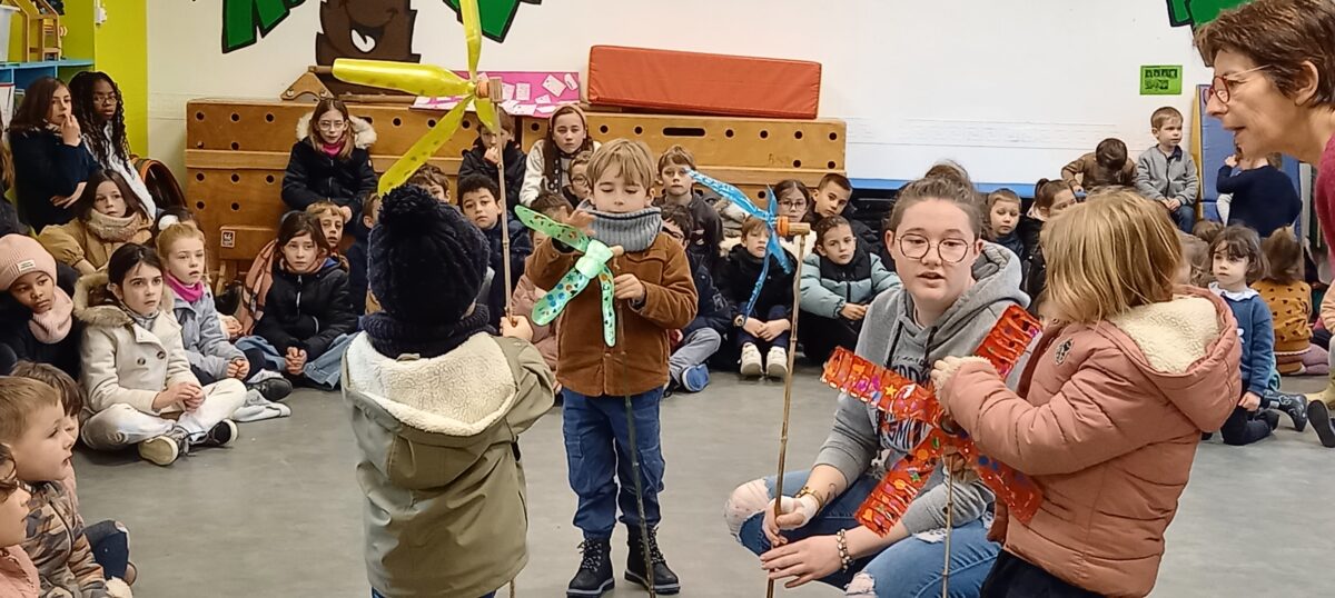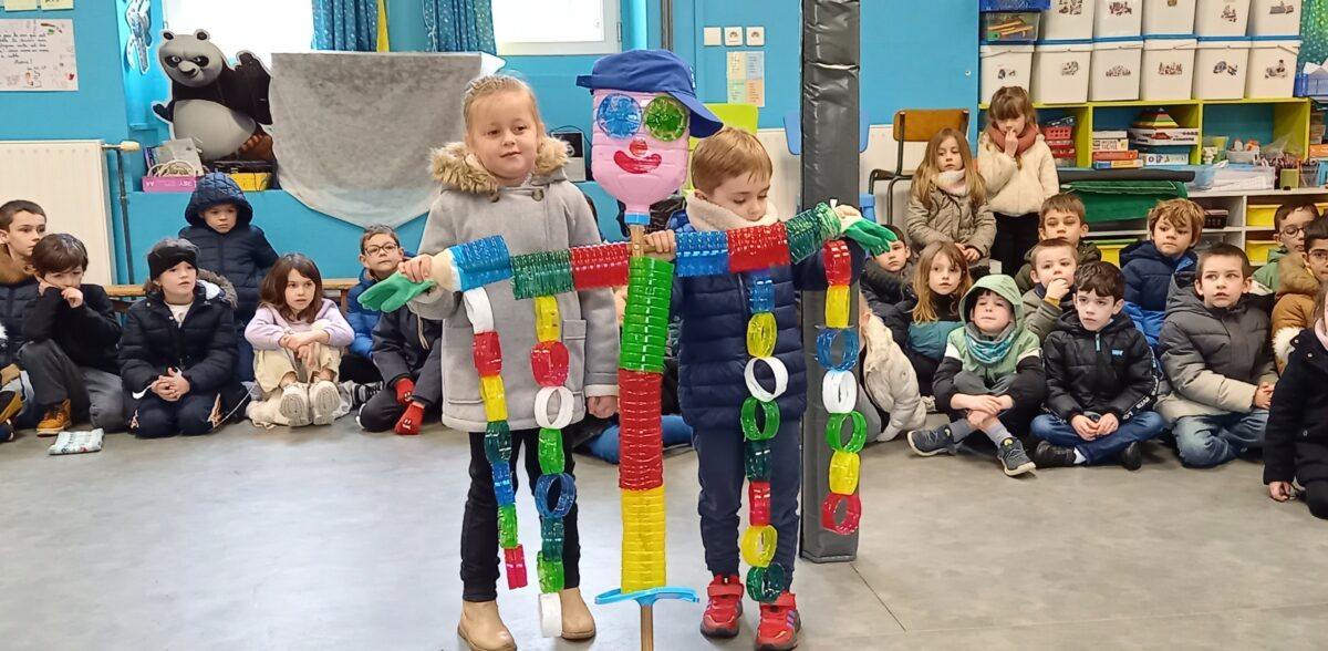 Vendredi 10 janvier, après la célébration sur le thème de l’épiphanie, tous les enfants se sont rassemblés dans la salle de motricité. Chaque classe a pu présenter ce qu’elle avait réalisé sur le thème du jardin : chouettes, épouvantails, moulins à vent. Toutes ces productions serviront à embellir la cour et le jardin.