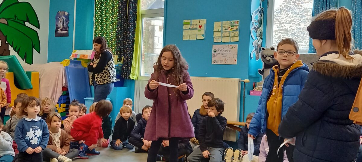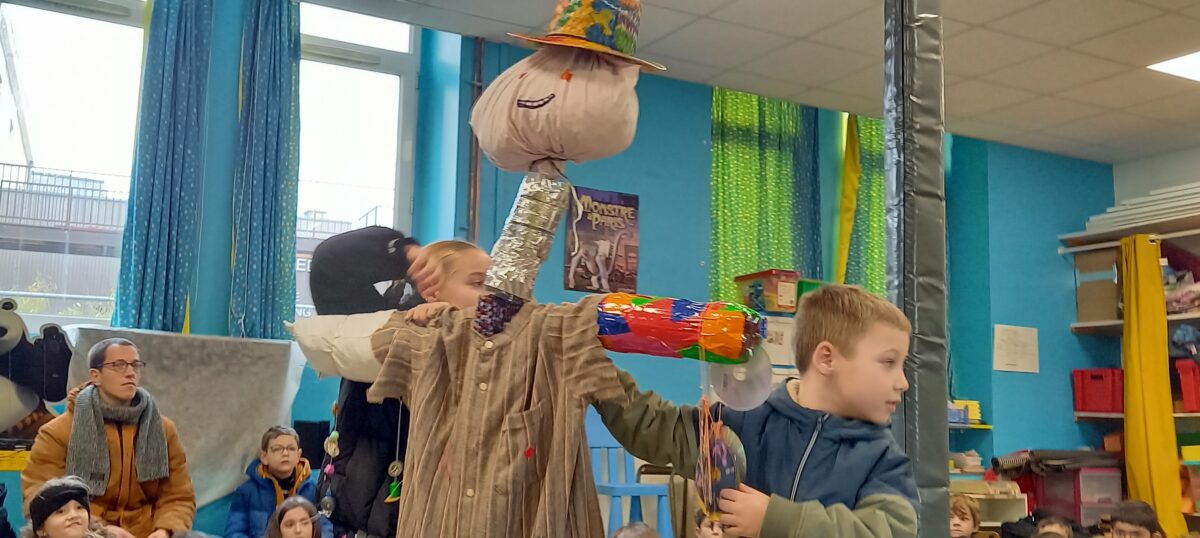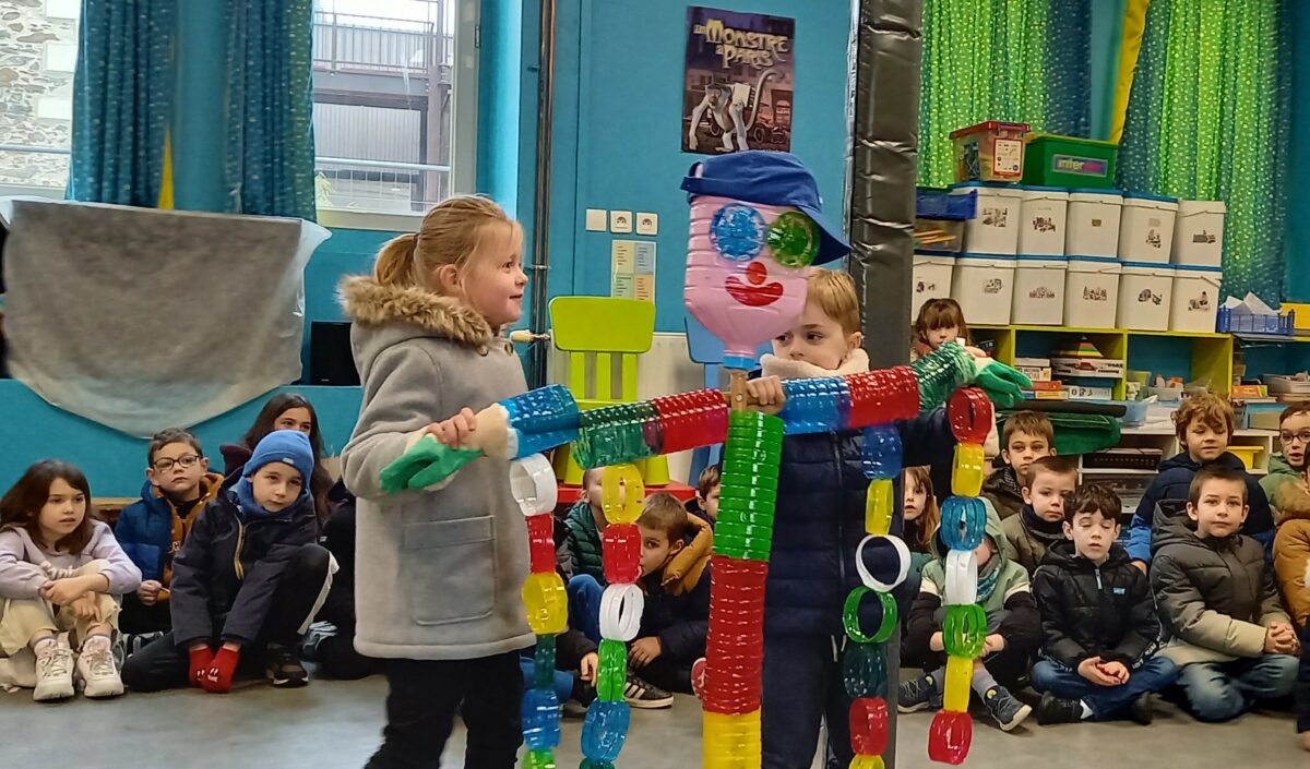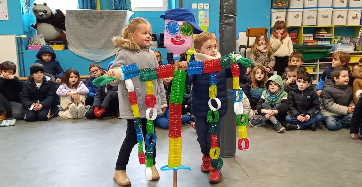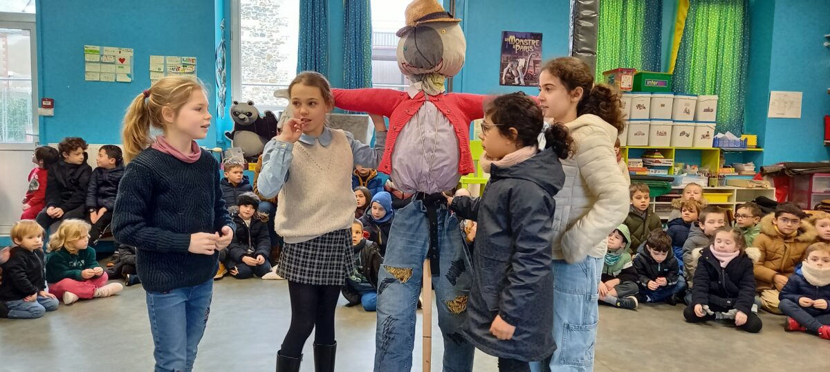 Vendredi 10 janvier, après la célébration sur le thème de l’épiphanie, tous les enfants se sont rassemblés dans la salle de motricité. Chaque classe a pu présenter ce qu’elle avait réalisé sur le thème du jardin : chouettes, épouvantails, moulins à vent. Toutes ces productions serviront à embellir la cour et le jardin.