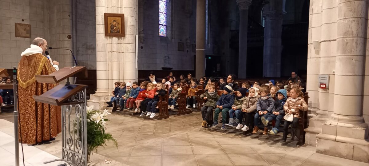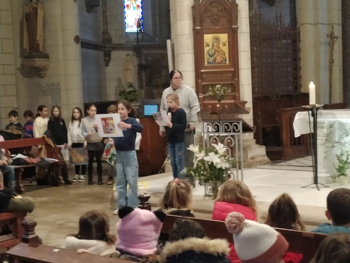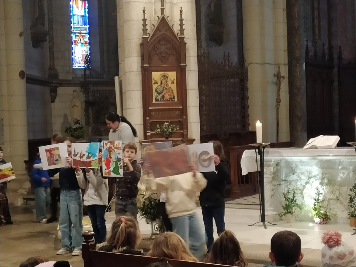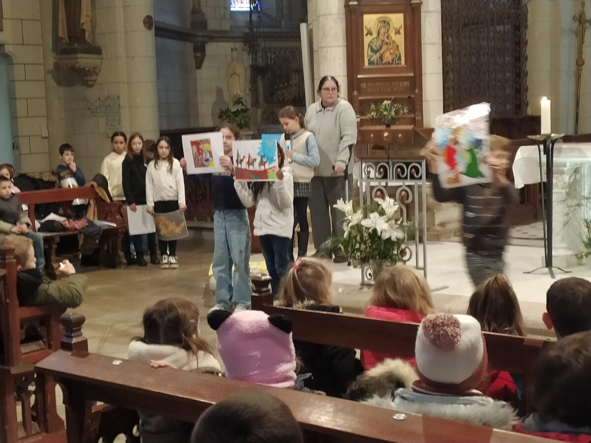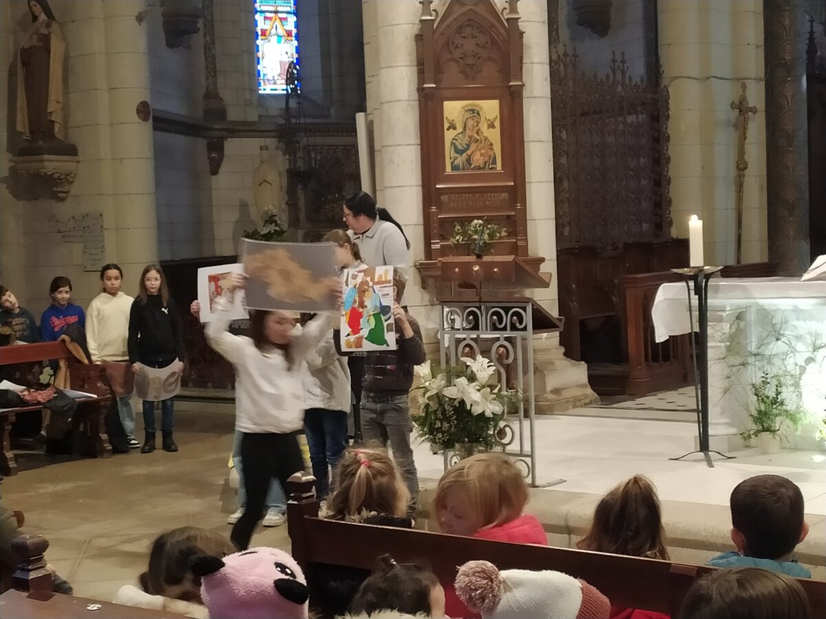 En janvier, tous les enfants de l’école ont partagé un moment de convivialité. Ils étaient tous réunis dans l’église pour vivre ensemble une célébration préparée et animée par les enfants catéchisés et le Père Augustin.