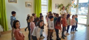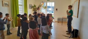 Depuis le 13 janvier, tous les lundis après-midis, nous allons chanter avec Marie. Sur un air d’accordéon, nous avons appris plusieurs chants ayant un lien avec notre projet d’année : C comme Célestin, I comme Irma, La chanson des bruits. Nous avons même appris un virelangue ! Ce n’était pas facile …. Le mardi 1er avril, avec la classe de CP-CE1, nous avons chanté devant un vrai public.
