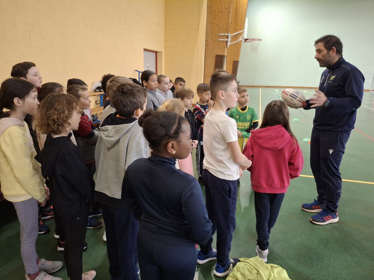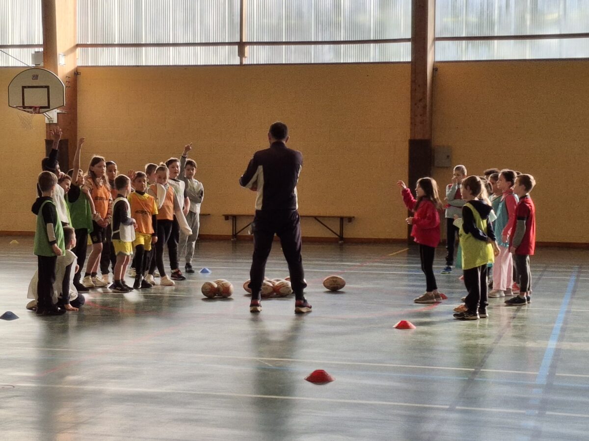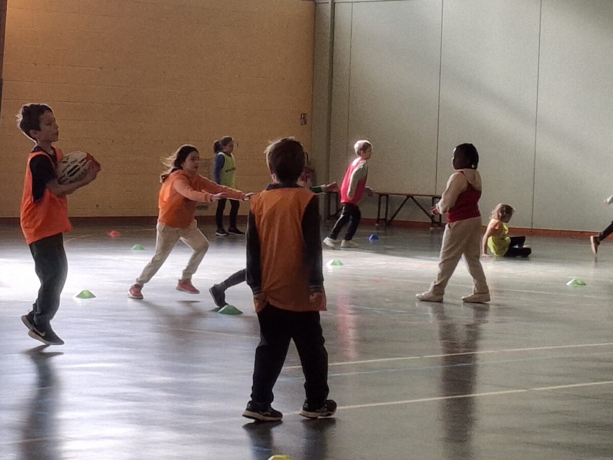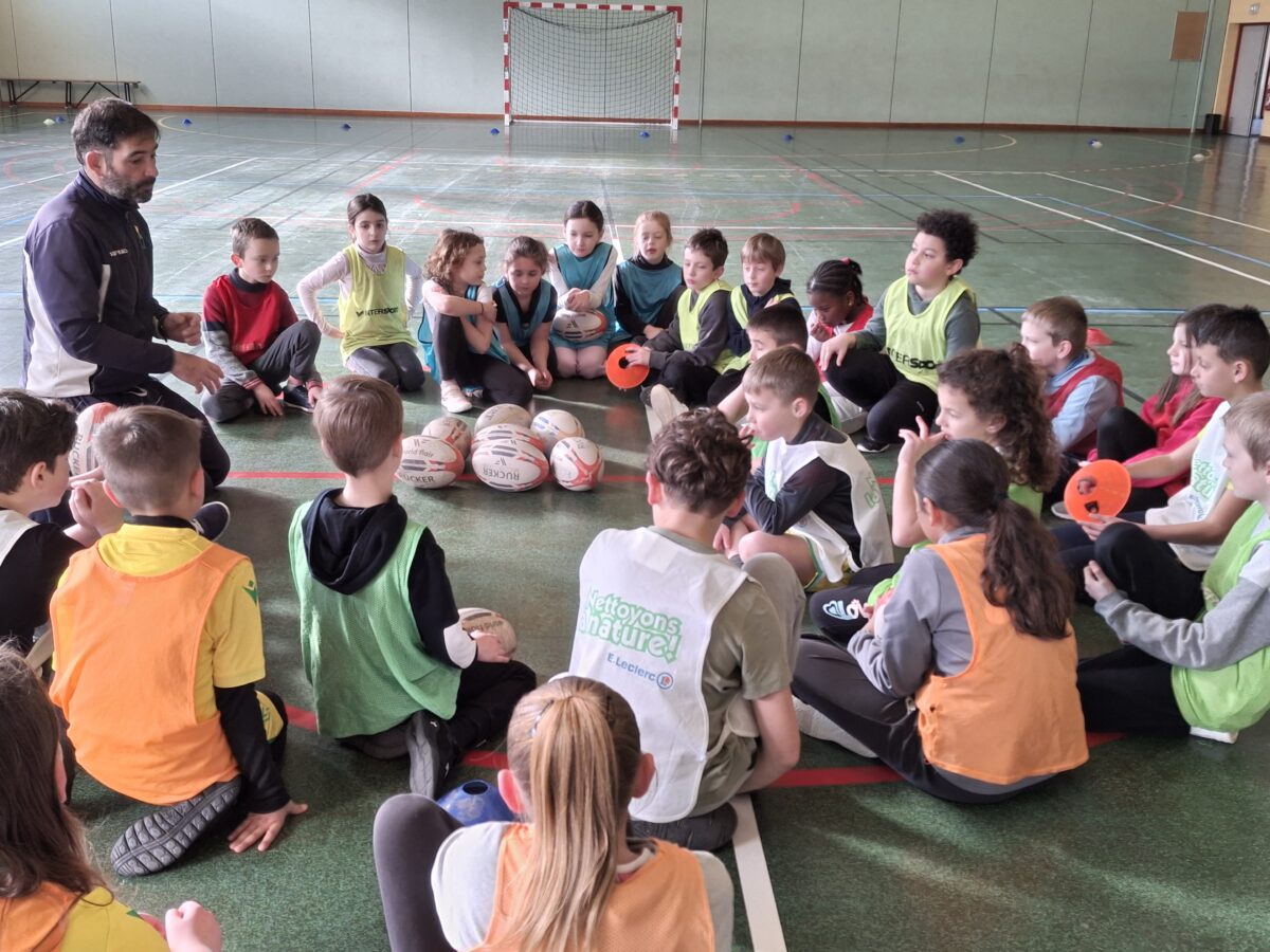 Les CE2-CM1 ont bénéficié de six séances de rugby avec Alexis Vivies, éducateur sportif au Rugby Club du Pays d’Ancenis. Une façon pour les enfants de découvrir le rugby « à toucher » et de vivre pleinement ce sport. Tous les enfants se sont surpassés… La sixième séance a eu lieu lors de la semaine sans cartable avec les classes de GS-CP, CP-CE1 et CM1-CM2 sous forme d’ateliers et de matchs. Merci beaucoup à Alexis pour son professionnalisme auprès des enfants.