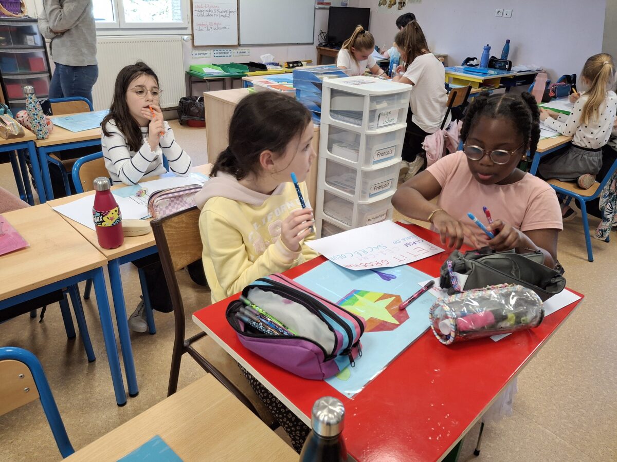 Cette année, les quatre classes de l’élémentaire ont participé au salon du livre 2025. Le salon du livre a pour objectifs de favoriser le goût de la lecture-plaisir et de l’écriture chez les enfants et de leur permettre la rencontre avec les auteurs ou les illustrateurs de la littérature jeunesse.