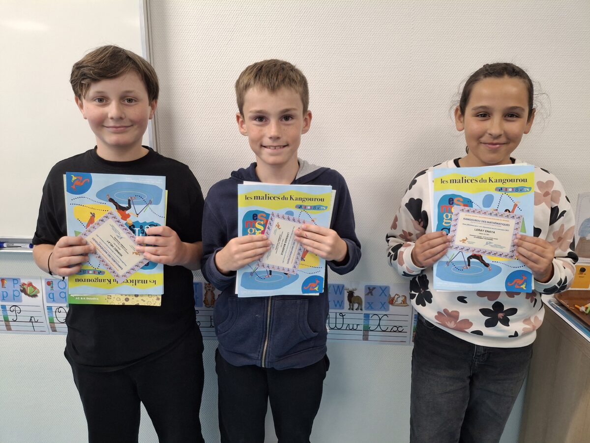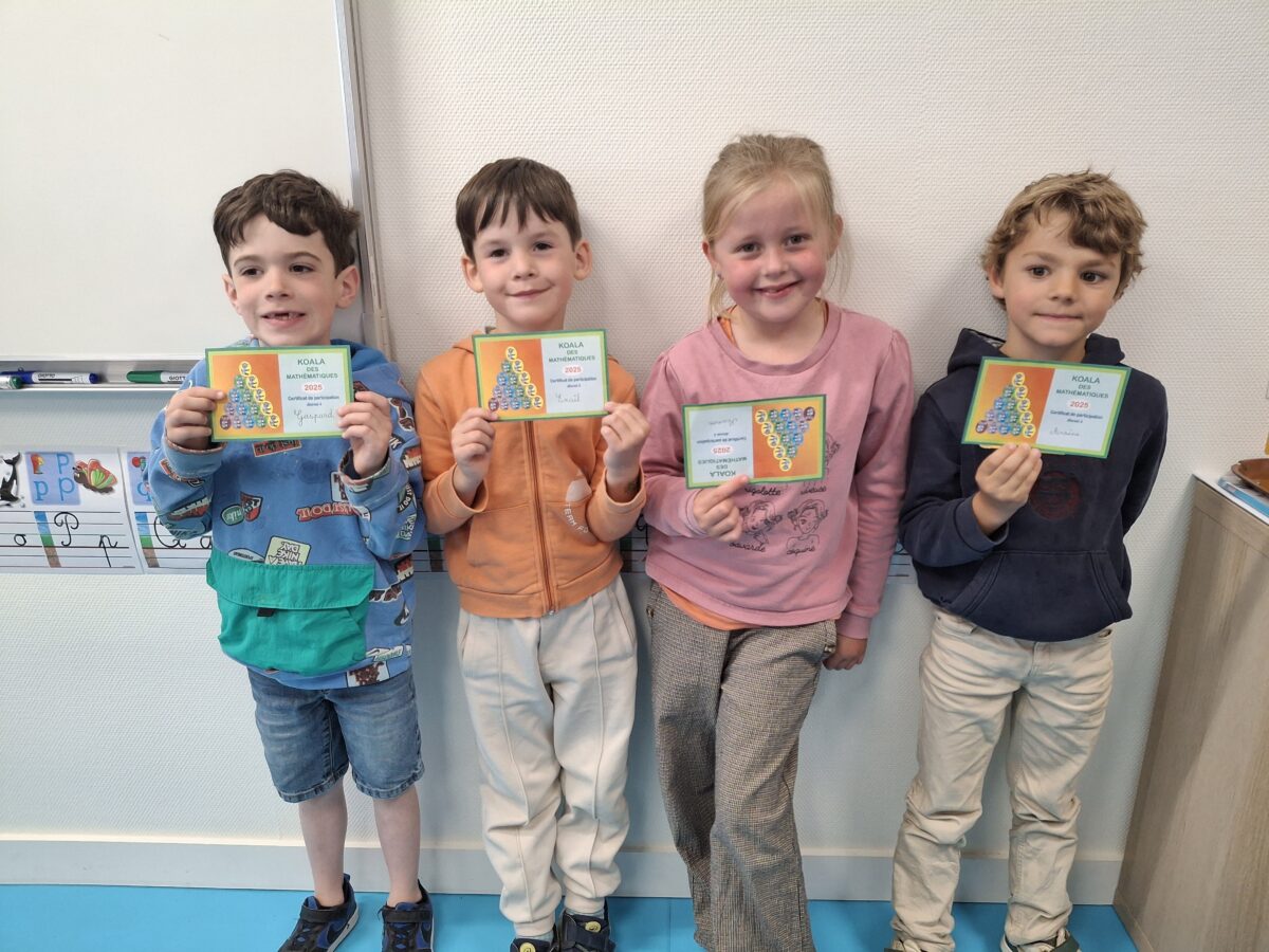 Au mois de mars, les élèves de CP et de CE2/CM1 ont participé à un concours national de mathématiques : koala pour les CP et kangourou pour les CE2/CM1. Les deux classes se sont donc réunies afin de connaître les résultats. Chacun a reçu un diplôme de participation ainsi qu’un petit cadeau. Bravo à tous !