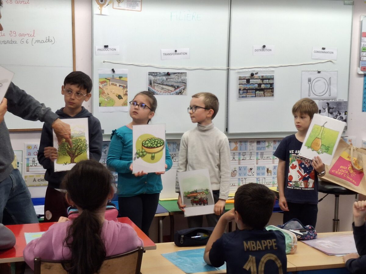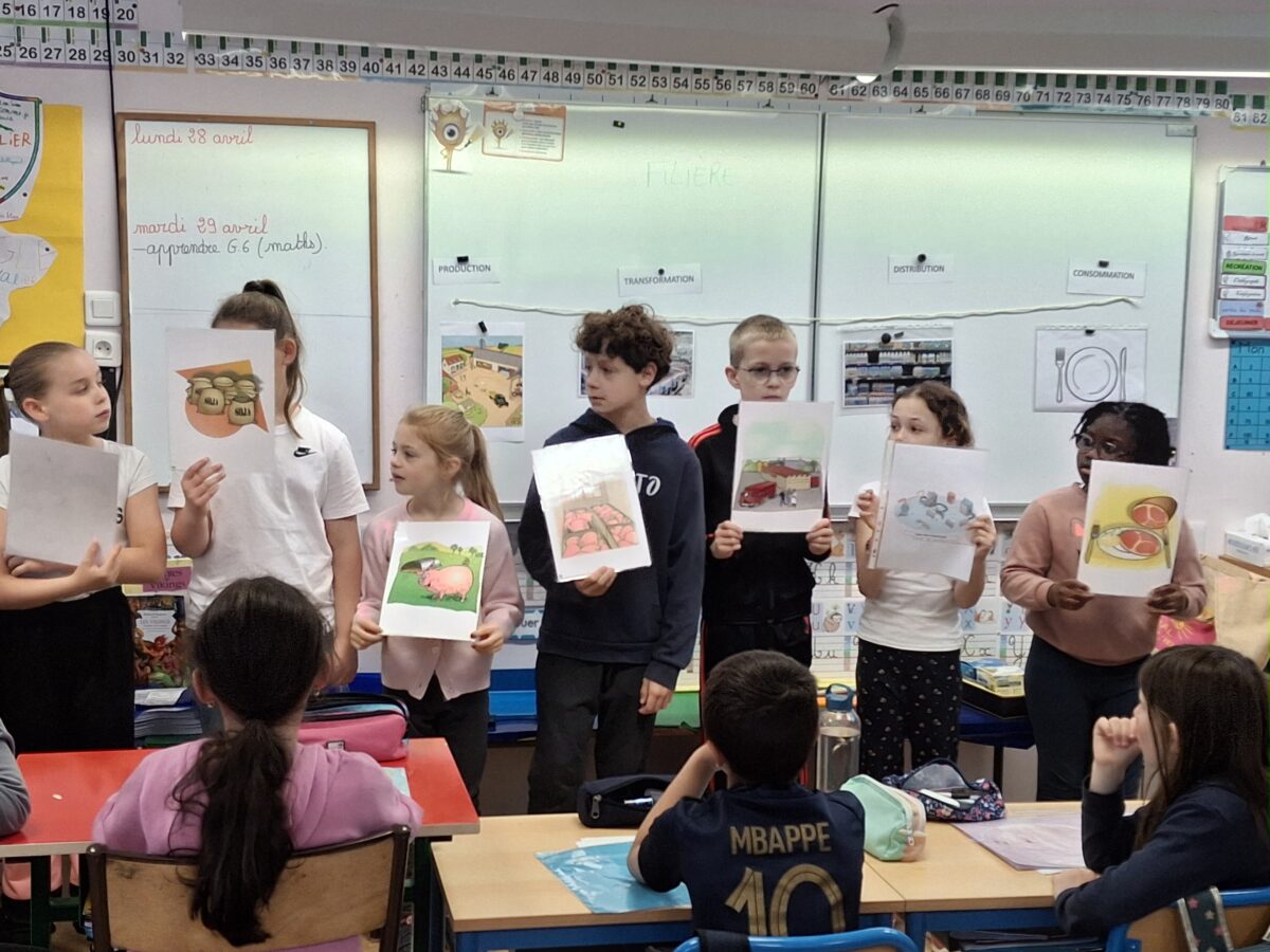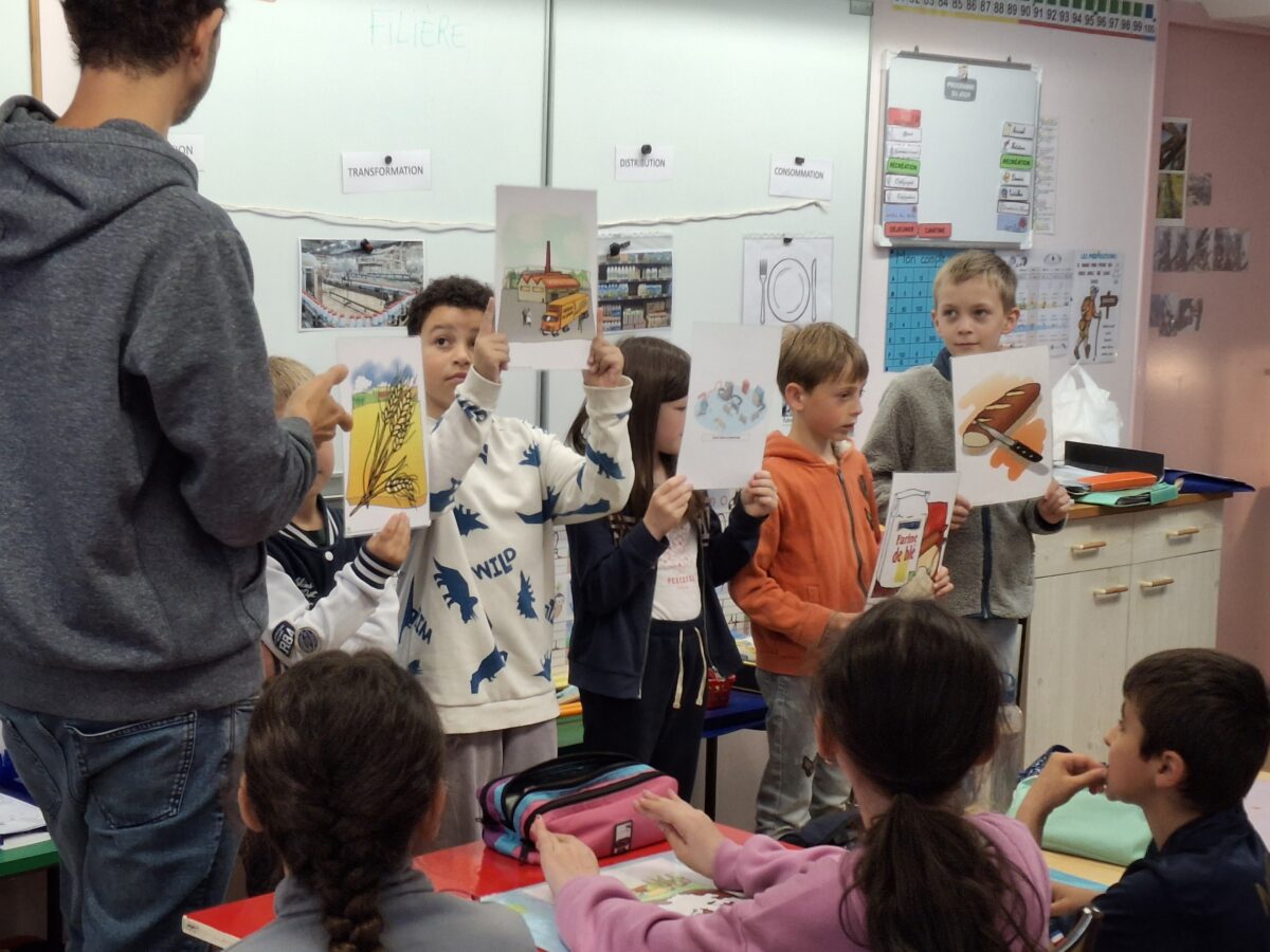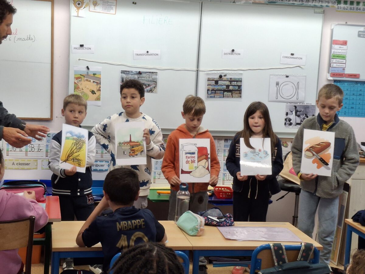 Le jeudi 24 avril, un animateur est venu dans la classe expliquer ce qu’est une filière alimentaire : le produit du champ à notre assiette. Pour cela, les enfants ont vu un film et ont fait des jeux.