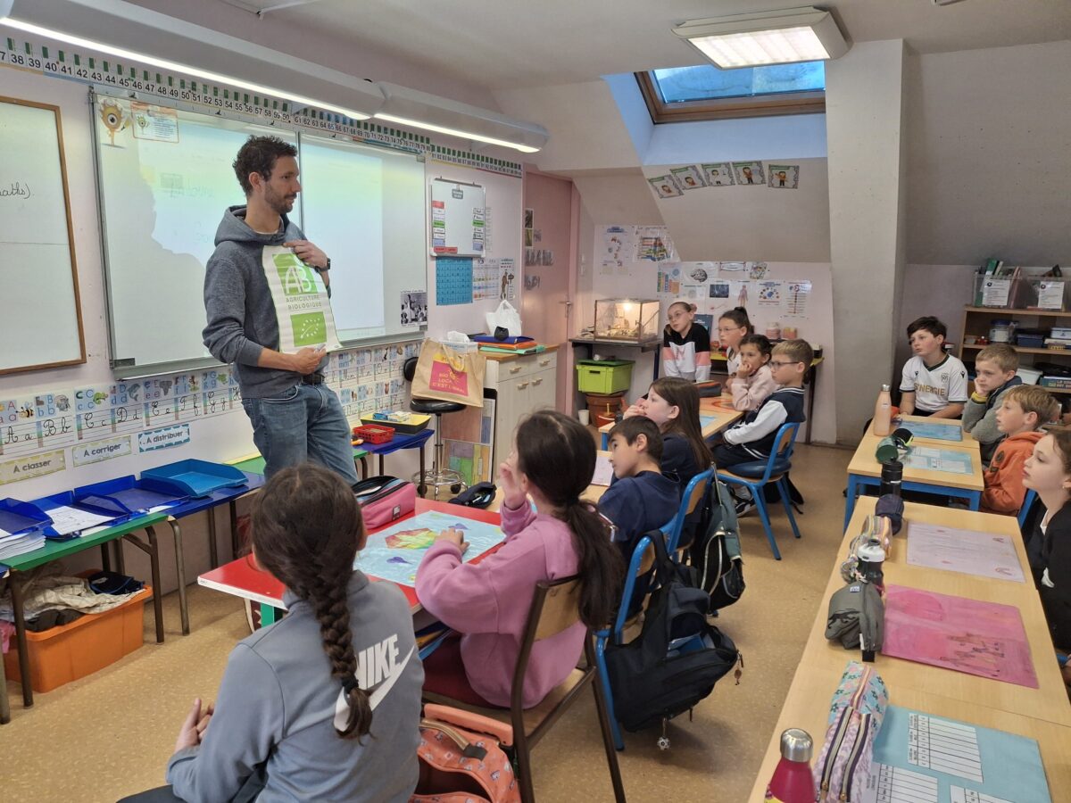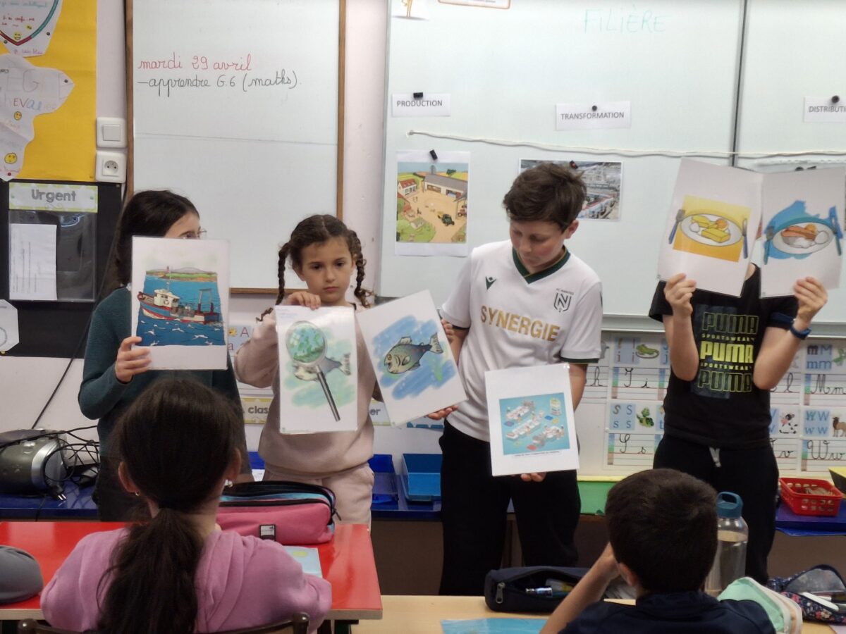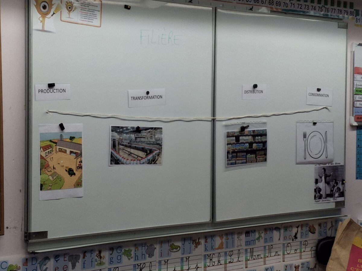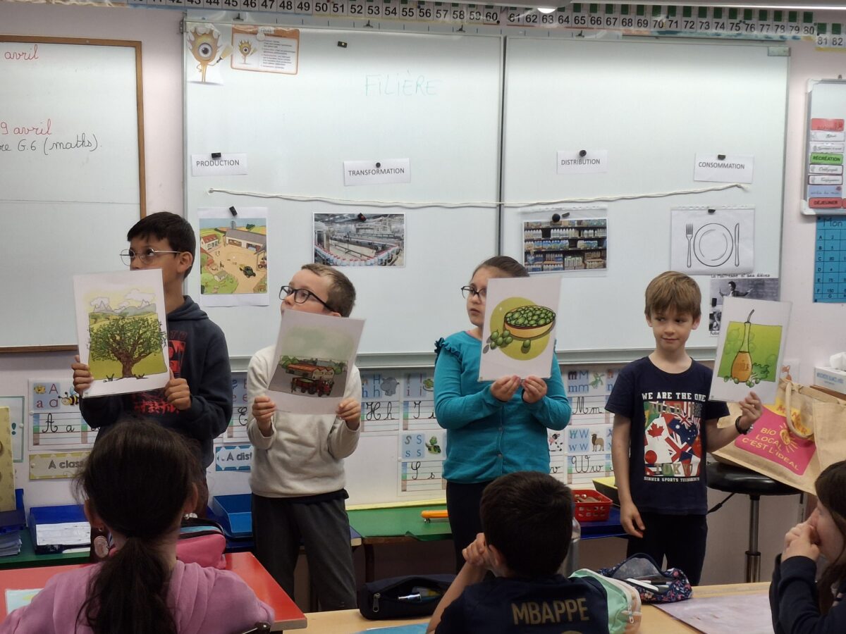 Le jeudi 24 avril, un animateur est venu dans la classe expliquer ce qu’est une filière alimentaire : le produit du champ à notre assiette. Pour cela, les enfants ont vu un film et ont fait des jeux.