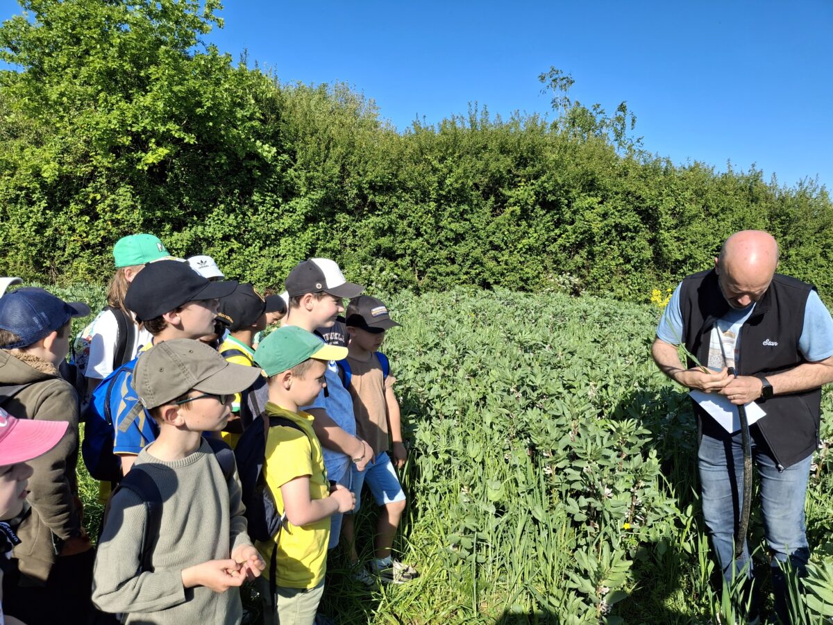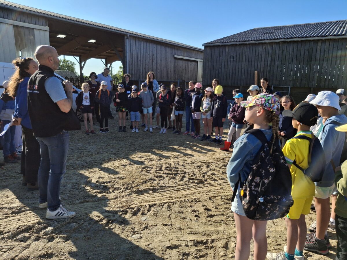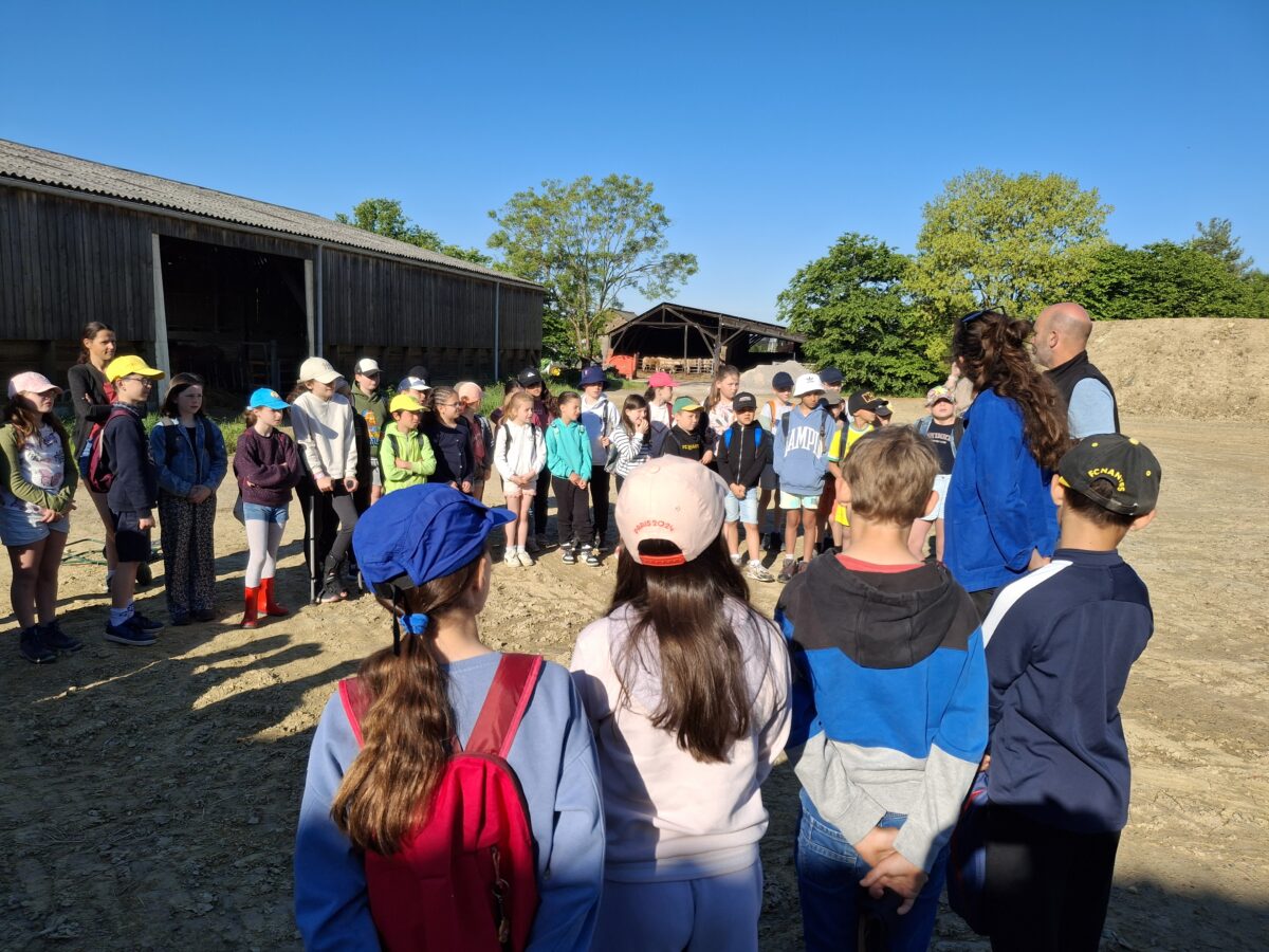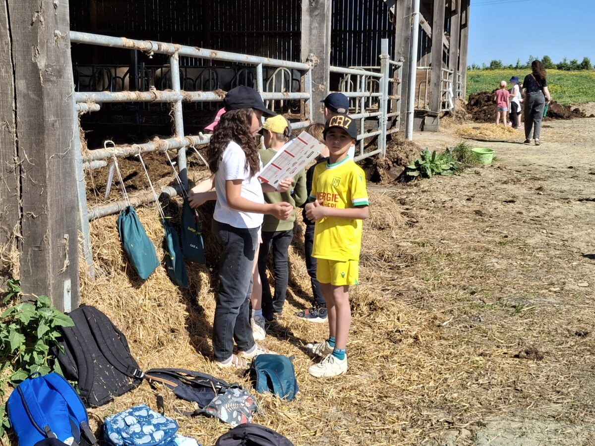 Puis le mardi 29 avril, les élèves sont partis toute la matinée visiter le GAEC des Mazures à Les Touches. Ils ont découvert un élevage bio bovin viande. C’était une matinée très intéressante : les enfants ont visité l’élevage, puis ont fait un rallye ferme avec une animatrice de la CCEG.