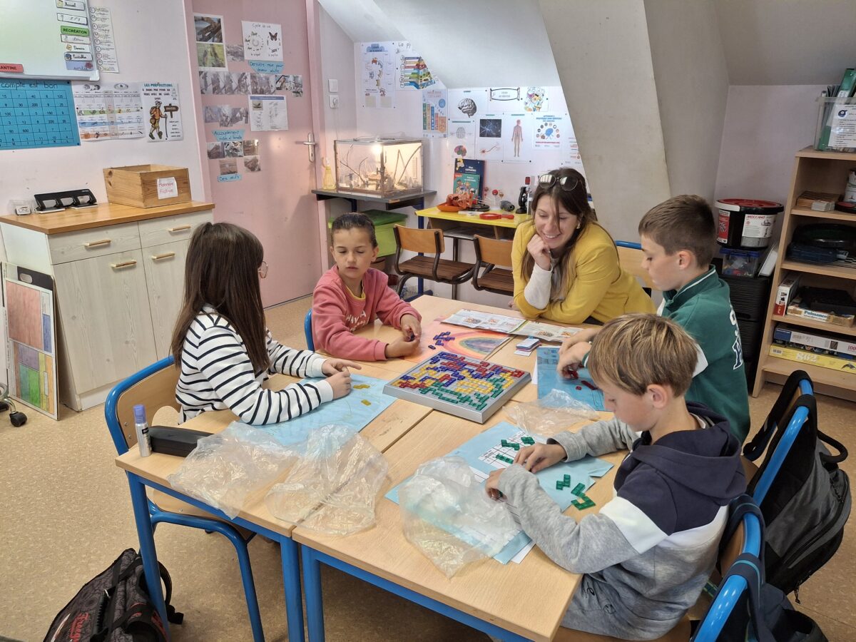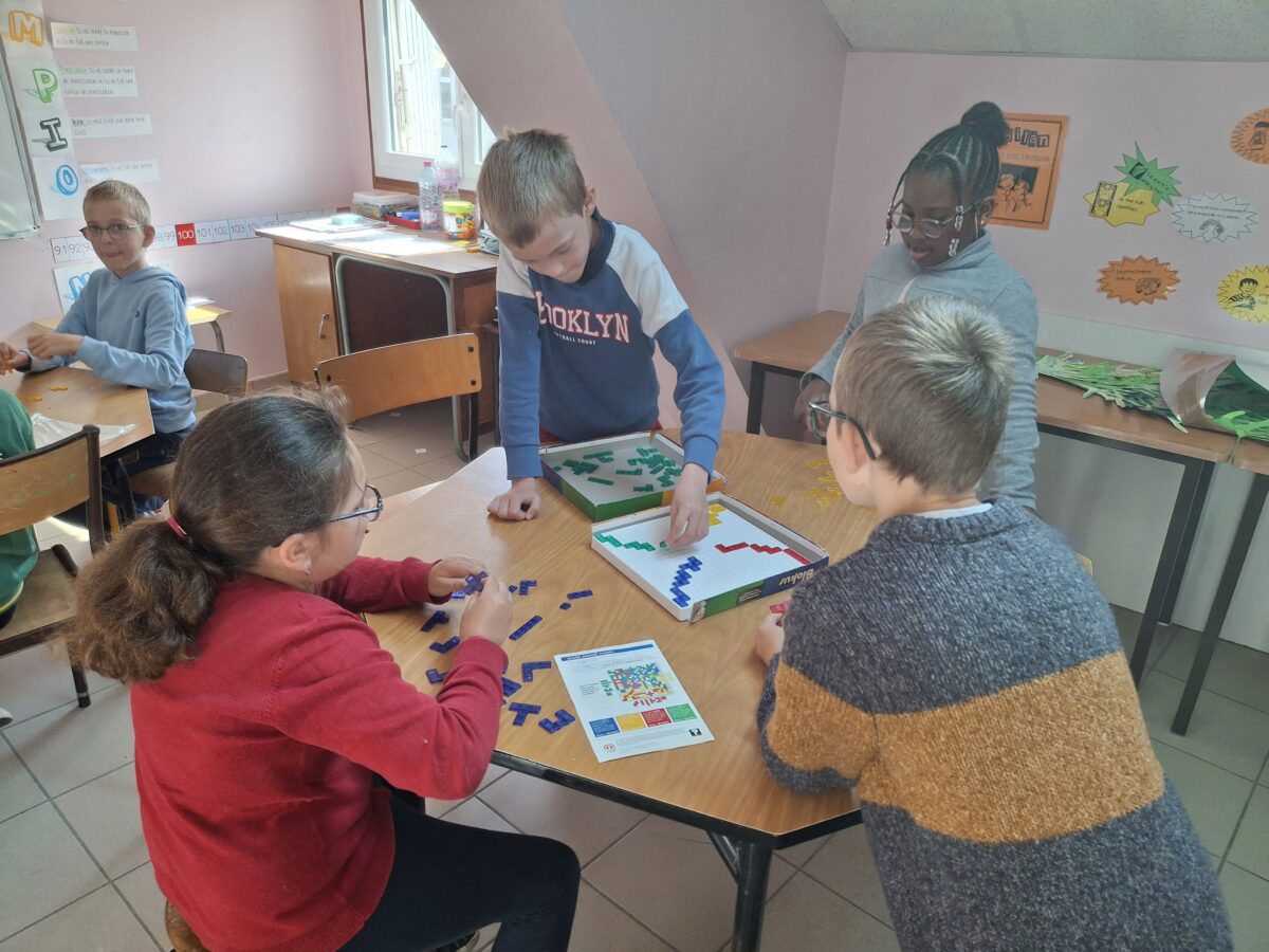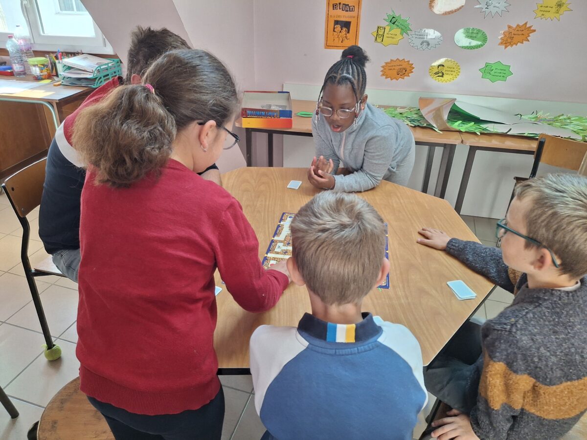 Vendredi 9 mai, la classe de CE2-CM1 ont joué à différents jeux de société. Des jeux pour travailler : le vocabulaire, l’orientation, la concentration… Un moment de partage.