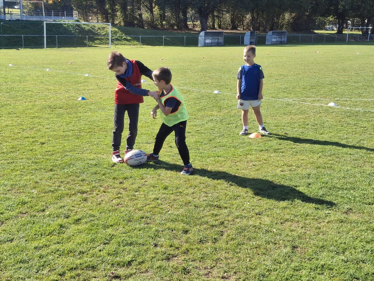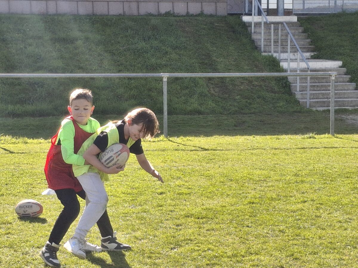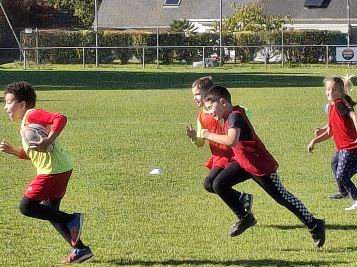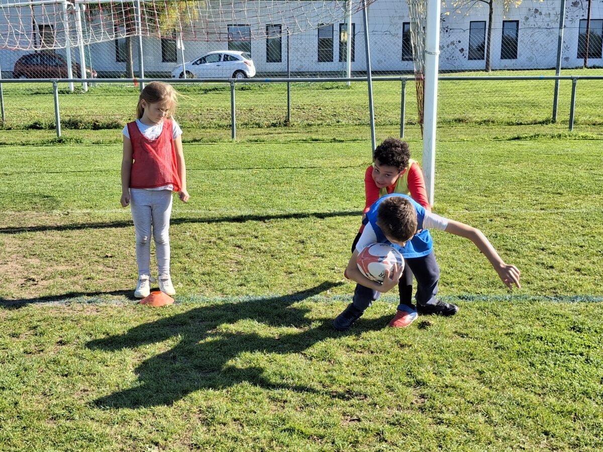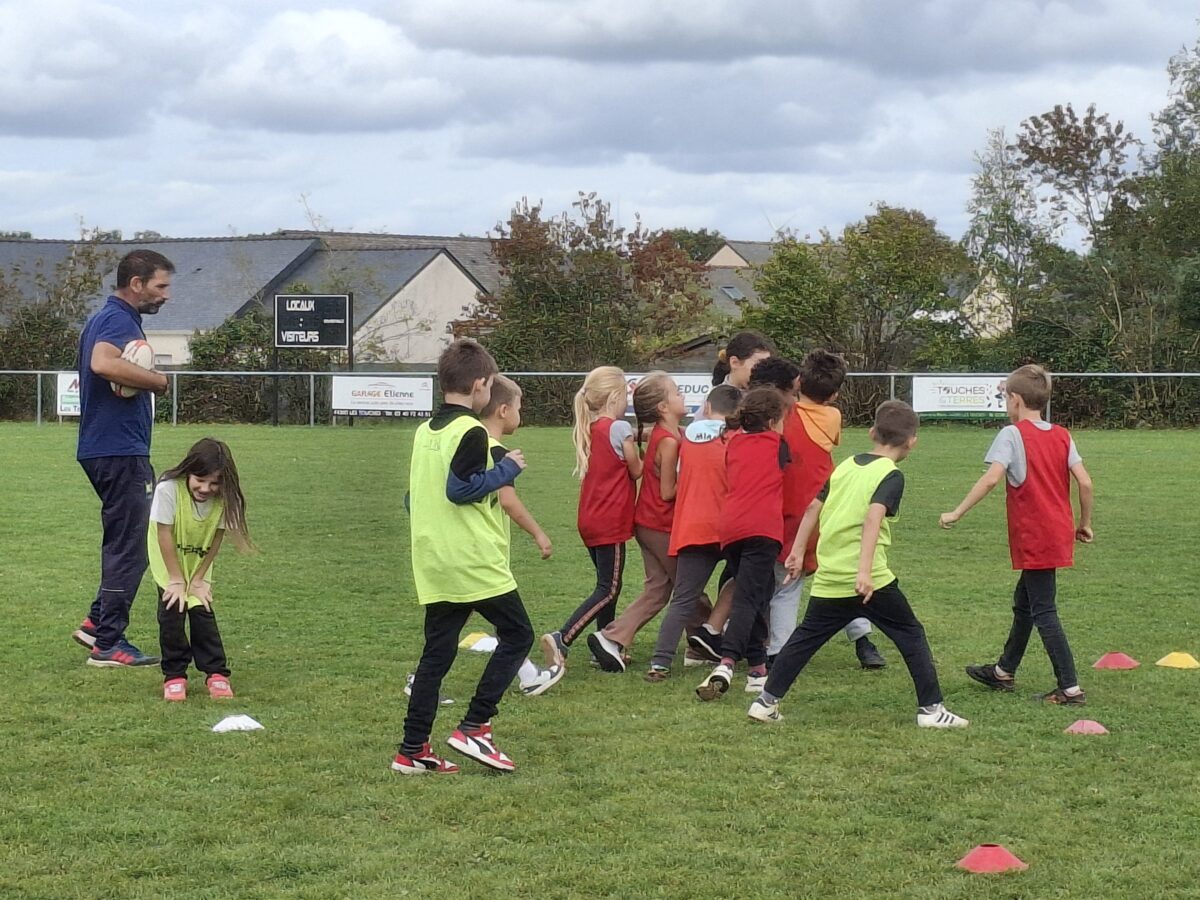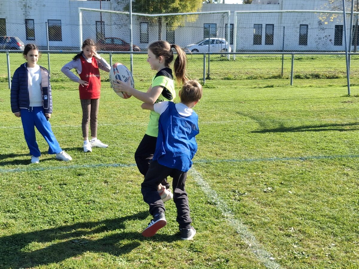 Les CE2-CM1 retrouvent cette année Alexis Vivies, éducateur sportif au Rugby Club du Pays d’Ancenis, pour six séances de rugby. Mais cette fois-ci à l’extérieur, sur le terrain en herbe. Une façon pour les enfants de découvrir le rugby « à plaquer » et de vivre pleinement ce sport. Tous les enfants se surpassent et progressent d’année en année… La sixième séance aura  lieu au retour des vacances de la Toussaint. Merci beaucoup à Alexis pour son professionnalisme auprès des enfants.