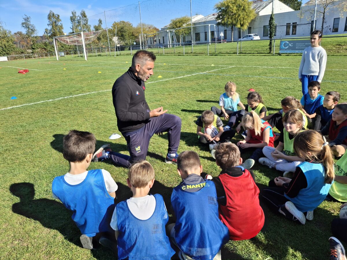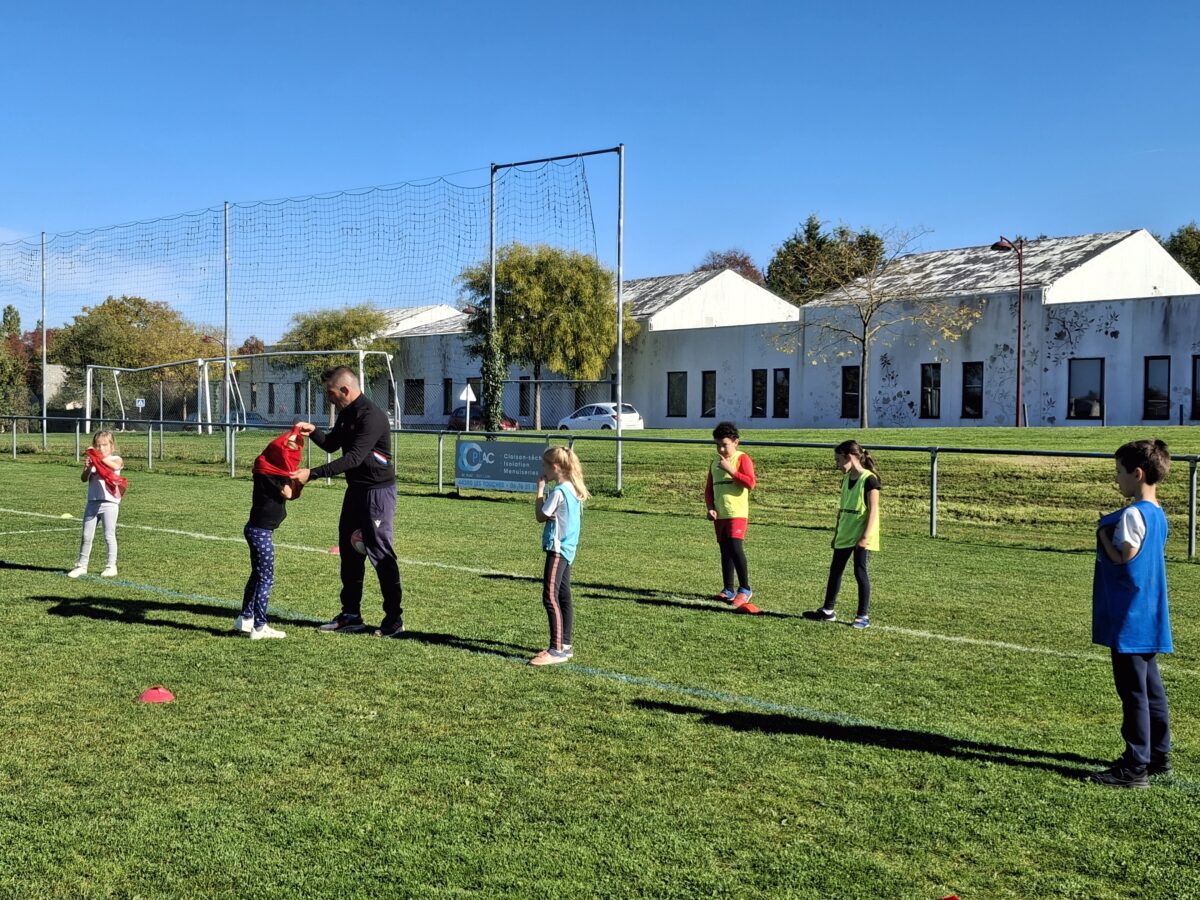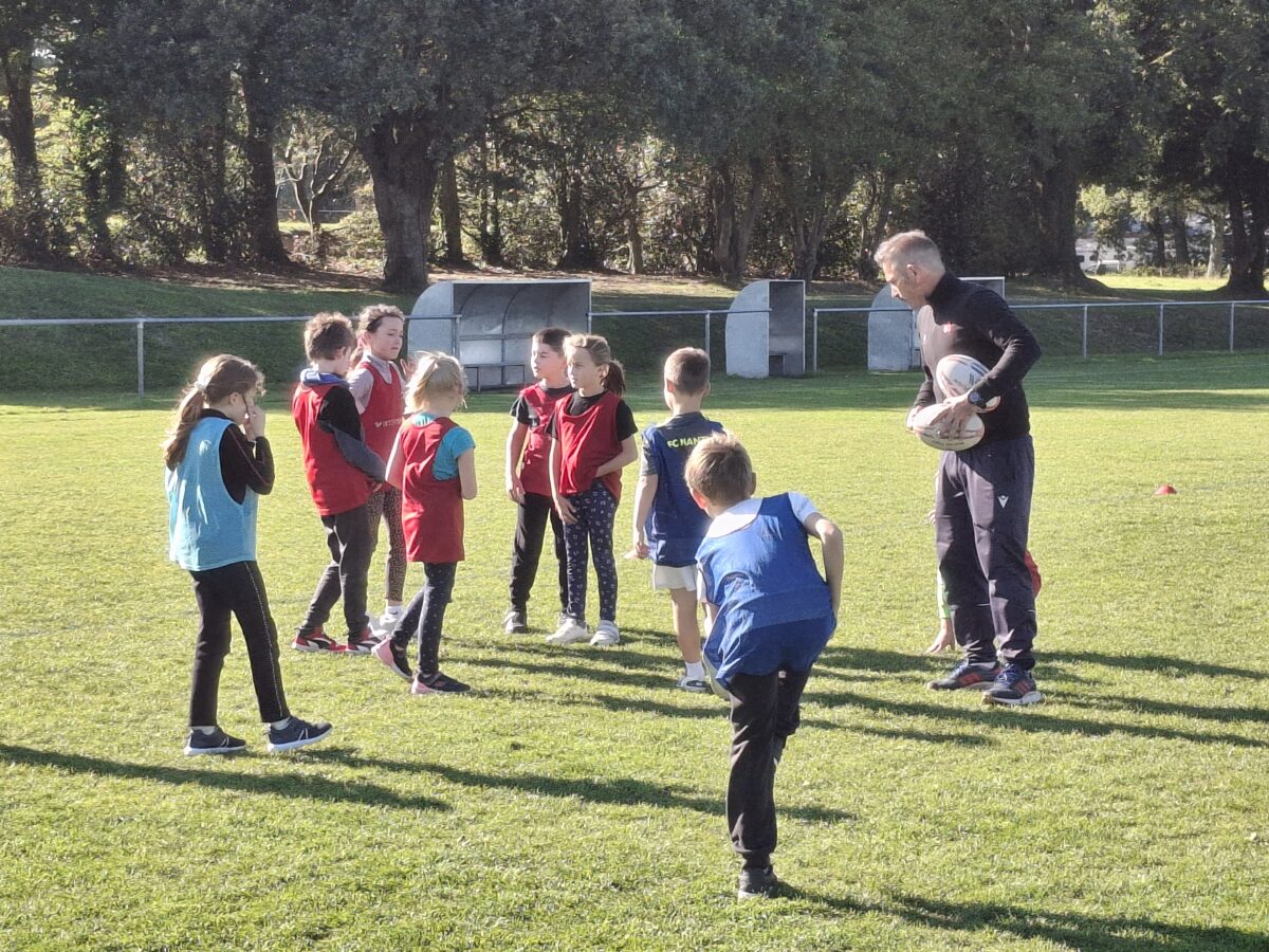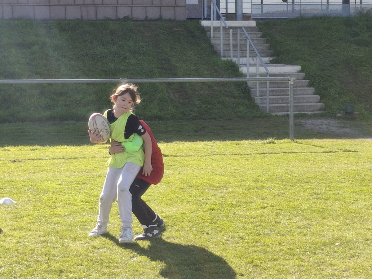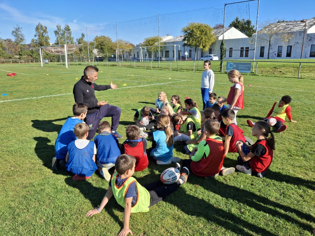 Les CE2-CM1 retrouvent cette année Alexis Vivies, éducateur sportif au Rugby Club du Pays d’Ancenis, pour six séances de rugby. Mais cette fois-ci à l’extérieur, sur le terrain en herbe. Une façon pour les enfants de découvrir le rugby « à plaquer » et de vivre pleinement ce sport. Tous les enfants se surpassent et progressent d’année en année… La sixième séance aura  lieu au retour des vacances de la Toussaint. Merci beaucoup à Alexis pour son professionnalisme auprès des enfants.