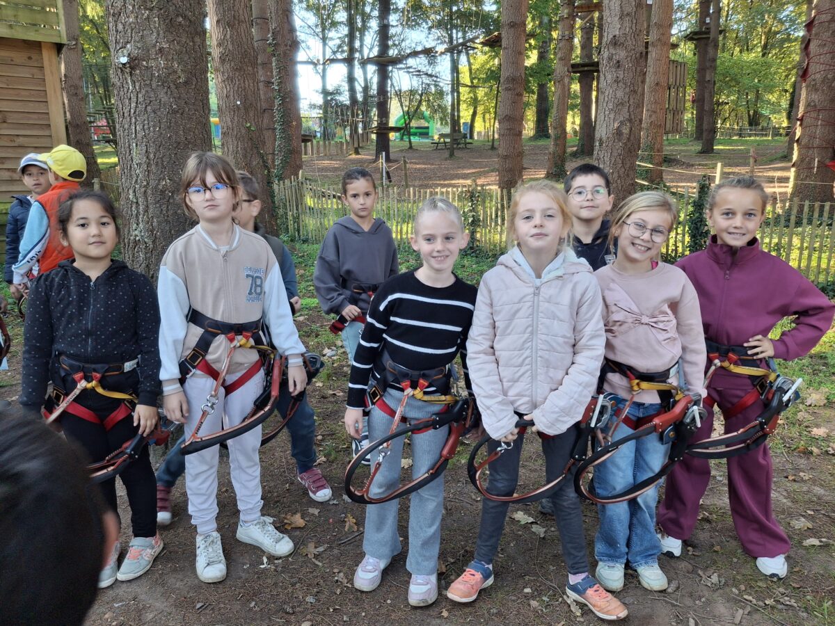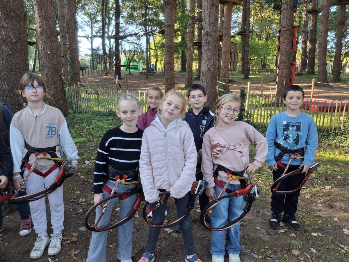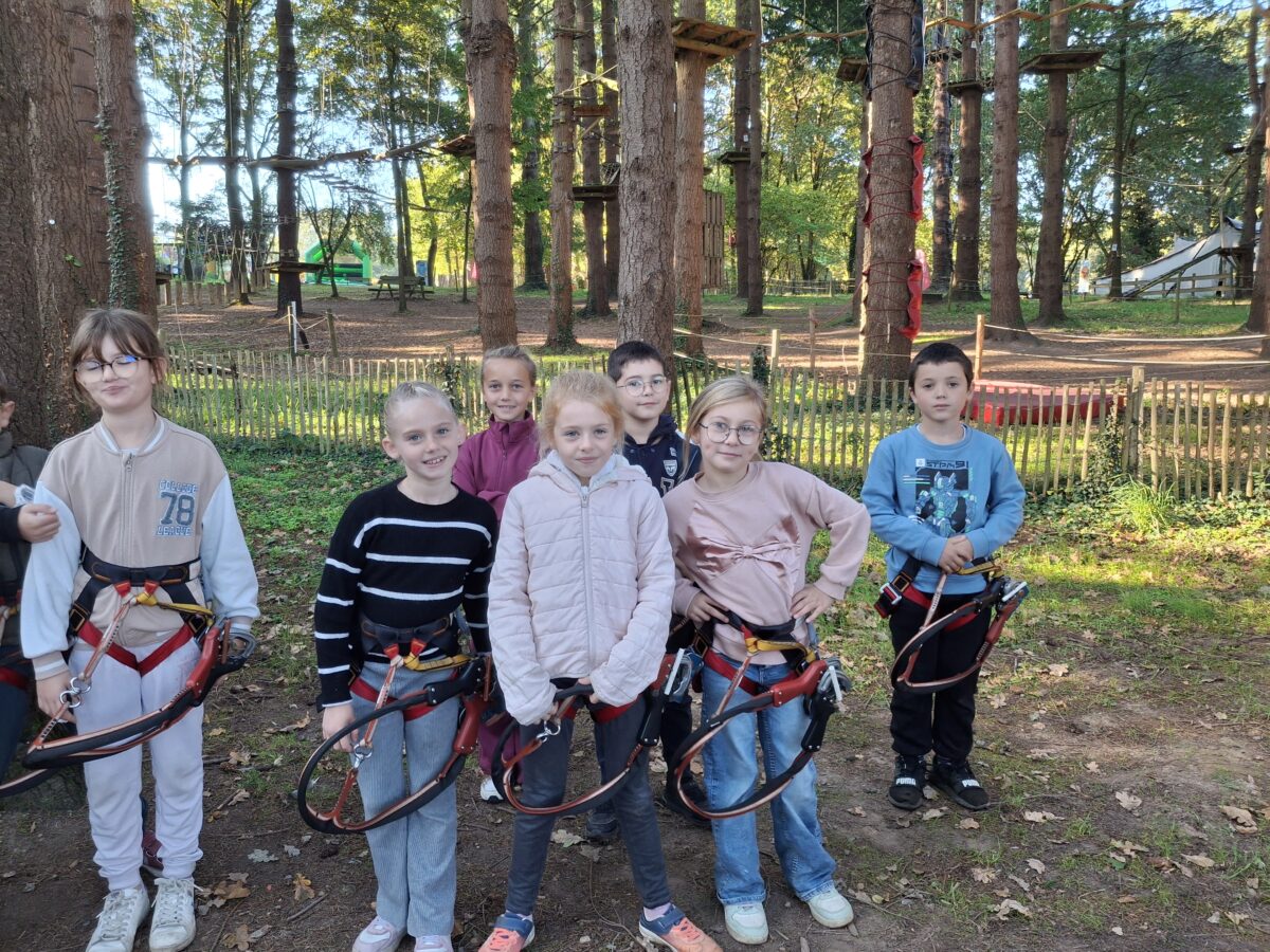 Mardi 30 septembre, les CE2-CM1 sont partis avec tous les autres enfants de l’école à la Vallée des Korrigans à Savenay. une sortie scolaire aura lieu dès ce début d’année. Ils ont pu se surpasser en faisant de l’accrobranche et s’amuser dans le parc d’attraction. Une telle sortie a permis la cohésion du groupe classe et une meilleure connaissance des enfants et adultes.
