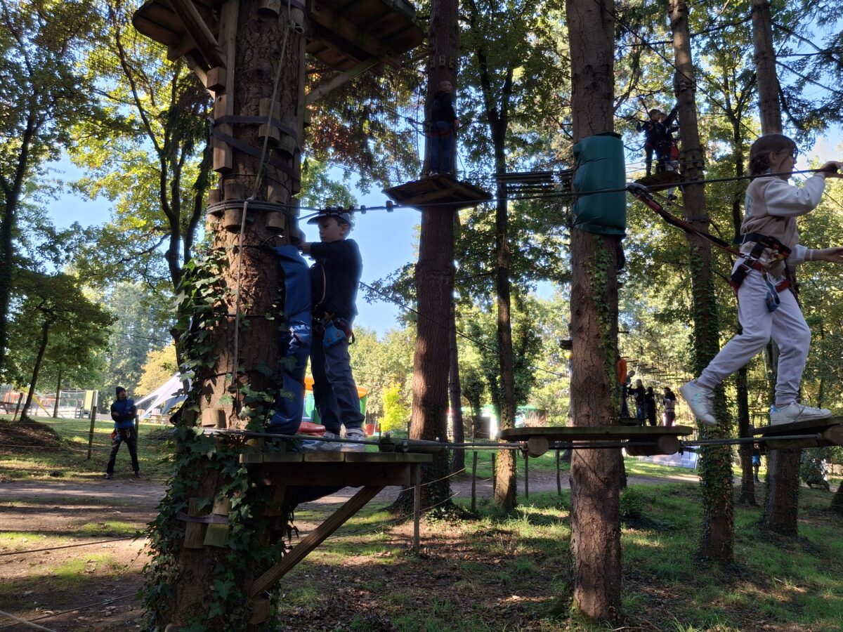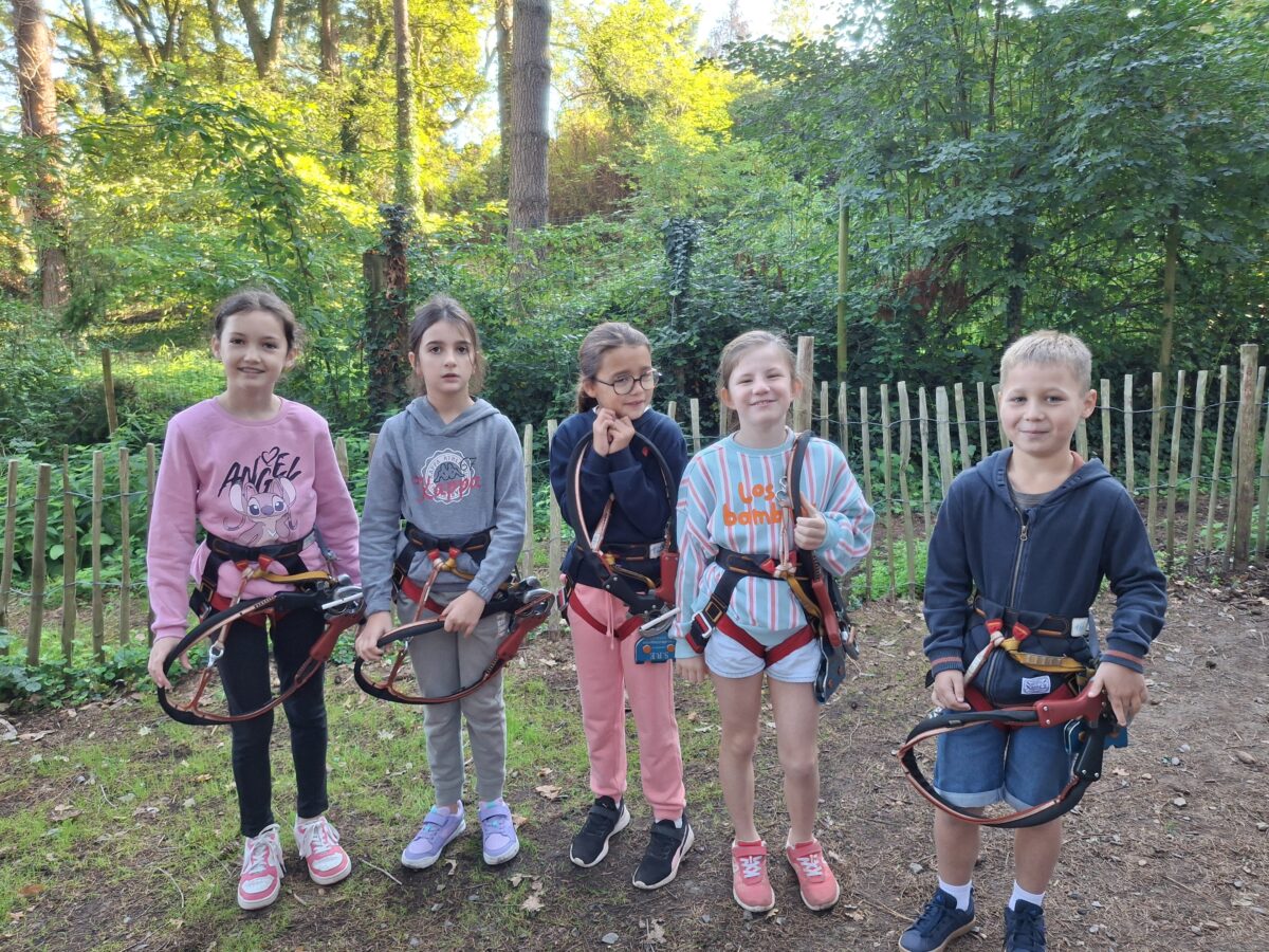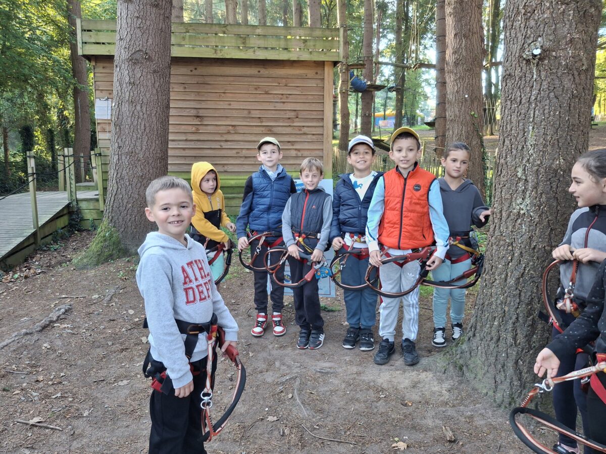 Mardi 30 septembre, les CE2-CM1 sont partis avec tous les autres enfants de l’école à la Vallée des Korrigans à Savenay. une sortie scolaire aura lieu dès ce début d’année. Ils ont pu se surpasser en faisant de l’accrobranche et s’amuser dans le parc d’attraction. Une telle sortie a permis la cohésion du groupe classe et une meilleure connaissance des enfants et adultes.