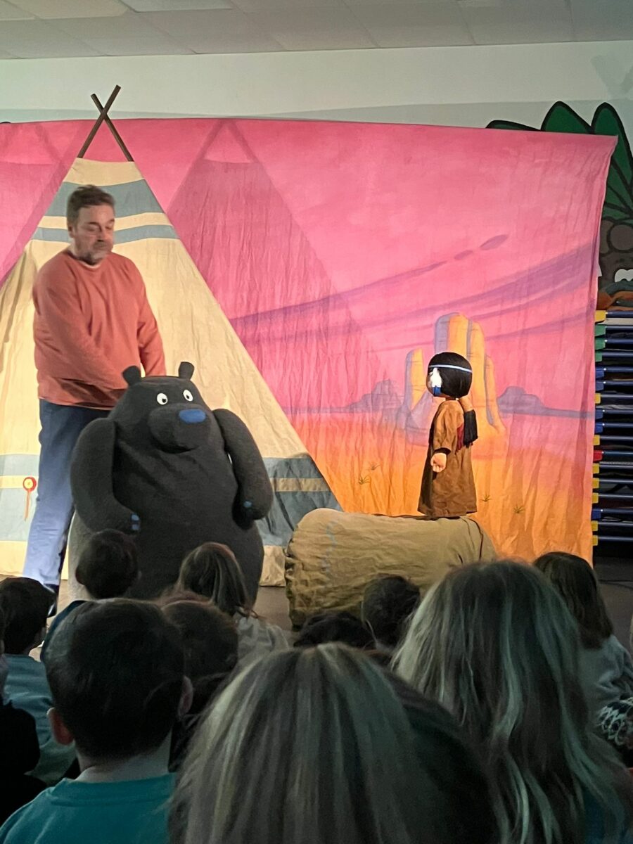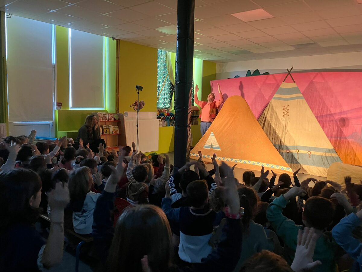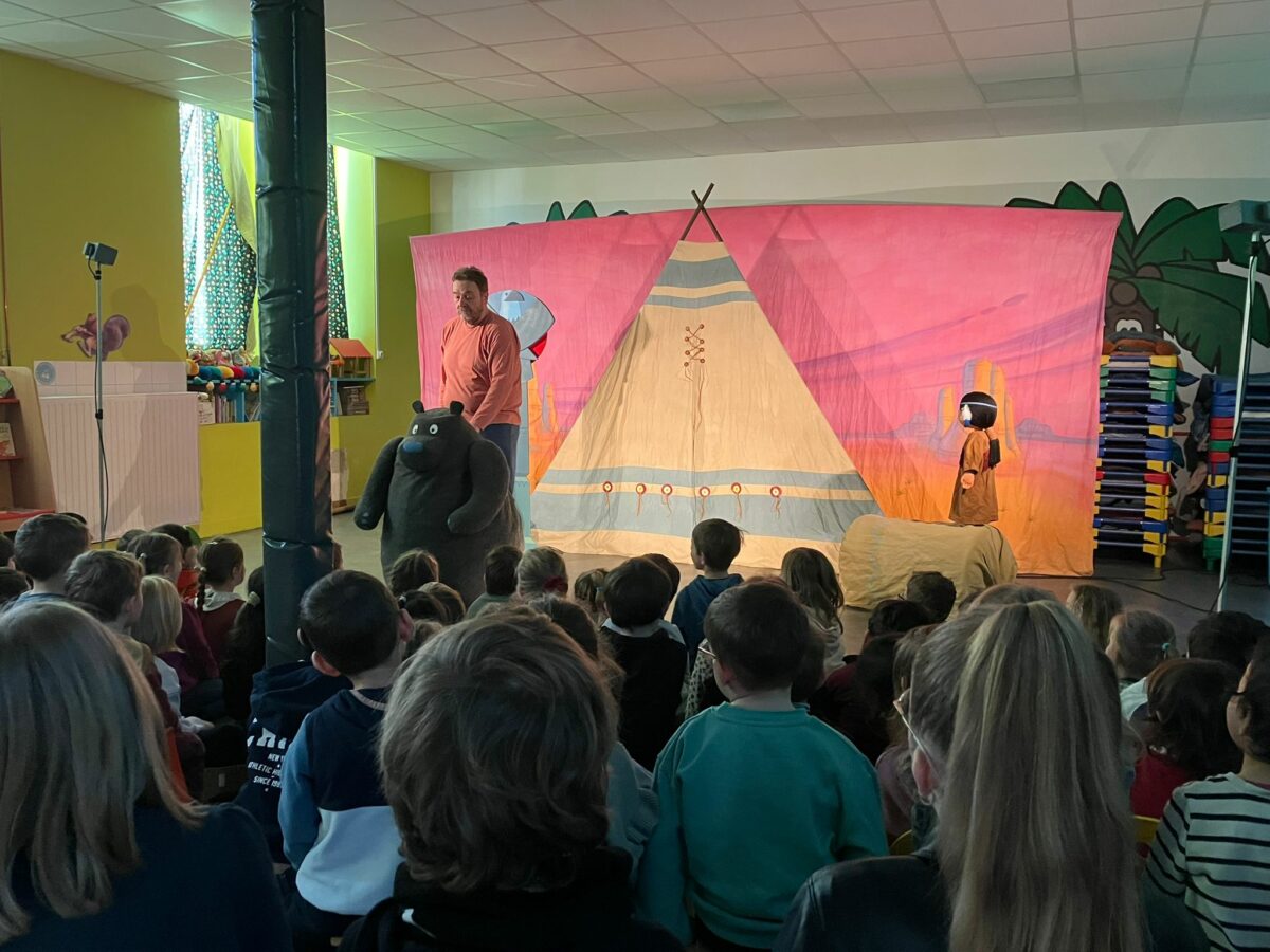 Ce vendredi, nous avons eu la chance d’assister au spectacle de la compagnie des 3 Chardons. Au programme, l’histoire de : « Petite Indienne ». Les enfants se plongent alors dans la vie d’une petite indienne qui grâce à ses rencontres arrive enfin à trouver à son nom. Si vous voulez toute l’histoire, demander aux enfants ! Un grand merci pour ce moment partagé avec les classes de maternelles.