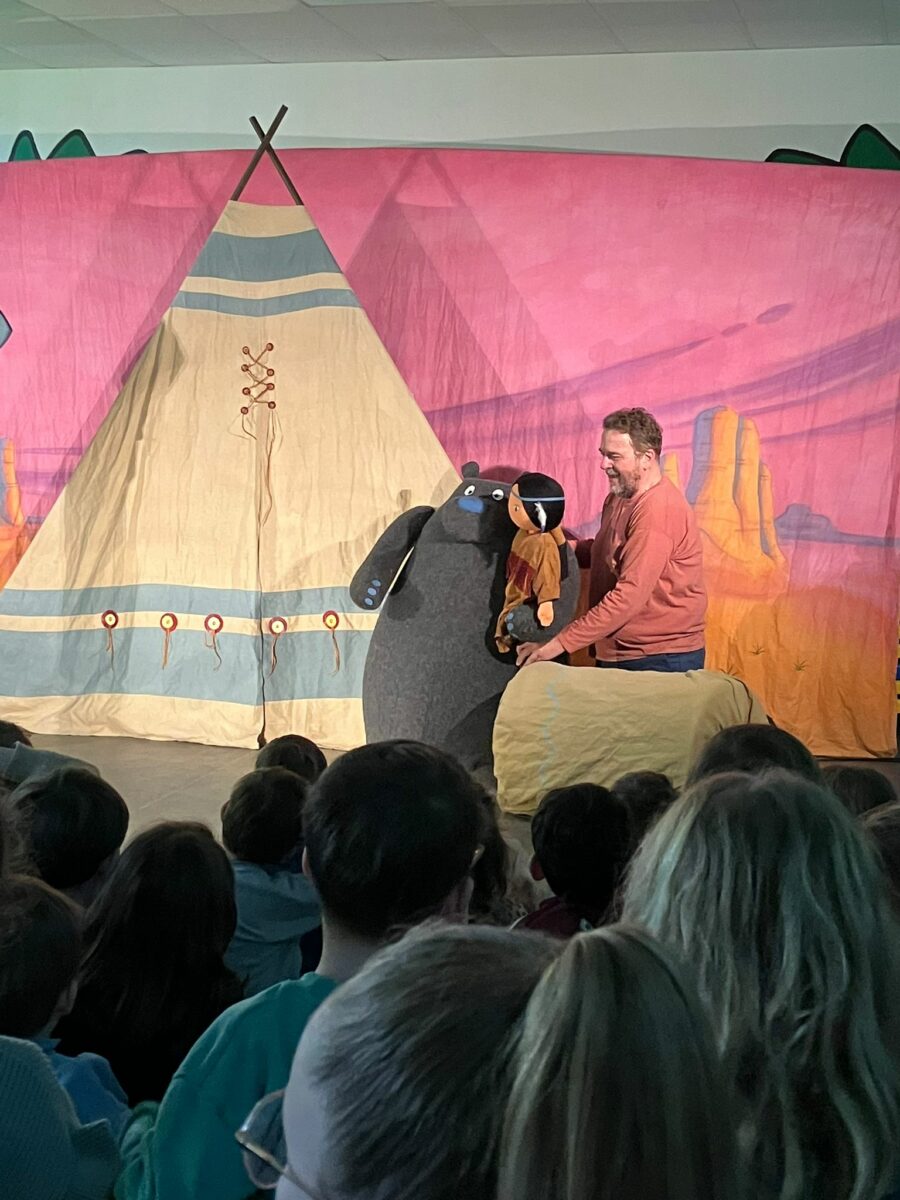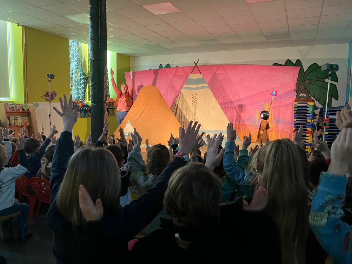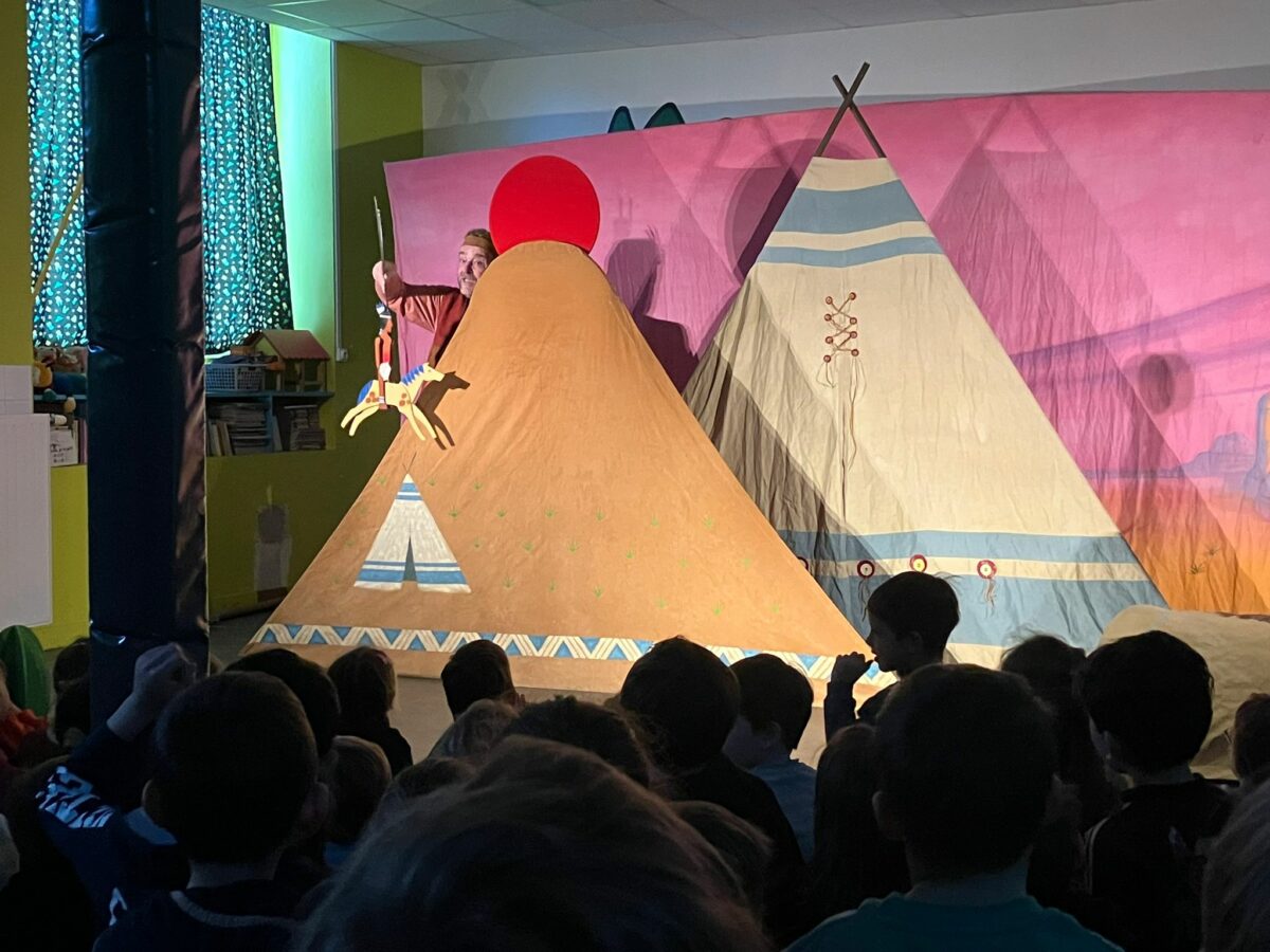 Ce vendredi, nous avons eu la chance d’assister au spectacle de la compagnie des 3 Chardons. Au programme, l’histoire de : « Petite Indienne ». Les enfants se plongent alors dans la vie d’une petite indienne qui grâce à ses rencontres arrive enfin à trouver à son nom. Si vous voulez toute l’histoire, demander aux enfants ! Un grand merci pour ce moment partagé avec les classes de maternelles.