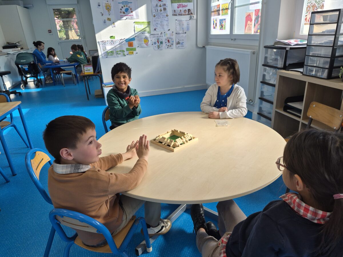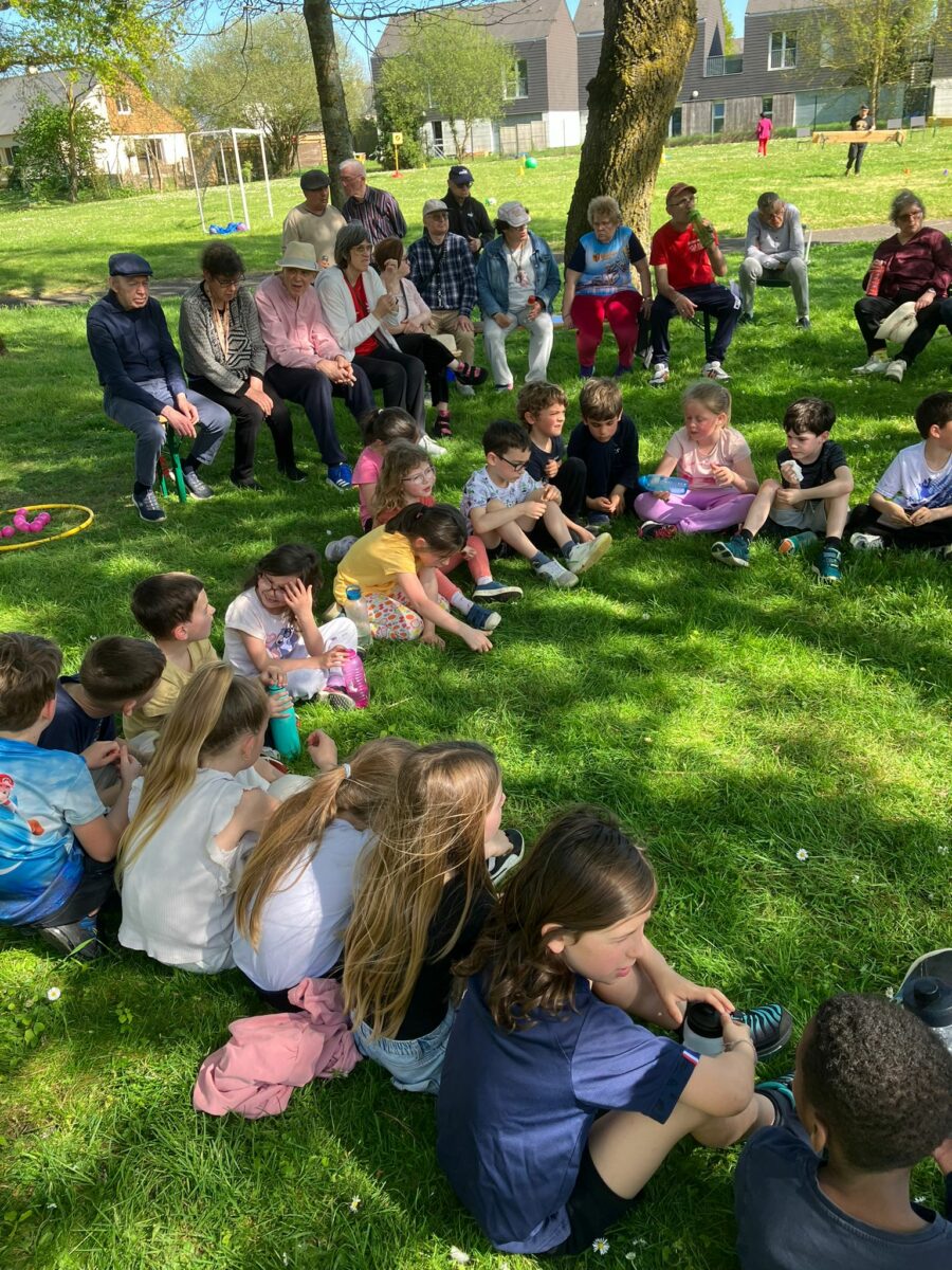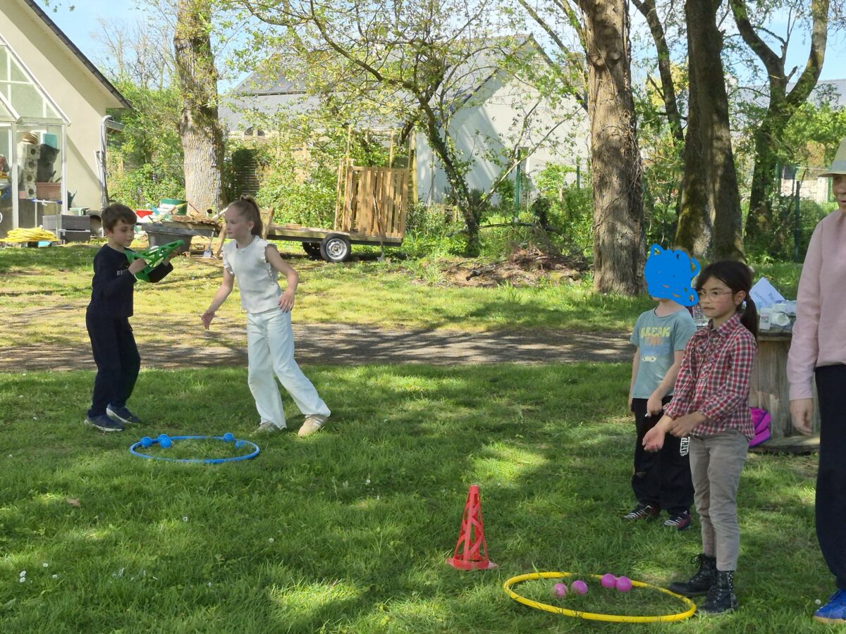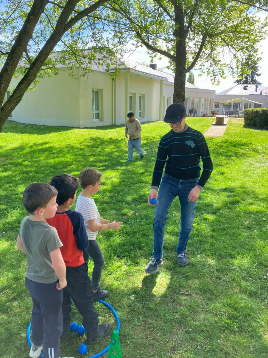 Mardi, nous avons commencé avec des jeux de société. Puis en fin de matinée, nous sommes allés à l’église pour fêter Pâques. L’après-midi, le foyer de vie nous avait invités (avec les CE1) à participer à des ateliers sportifs avec les résidents. Il faisait un temps magnifique et nous avons passé un super moment !