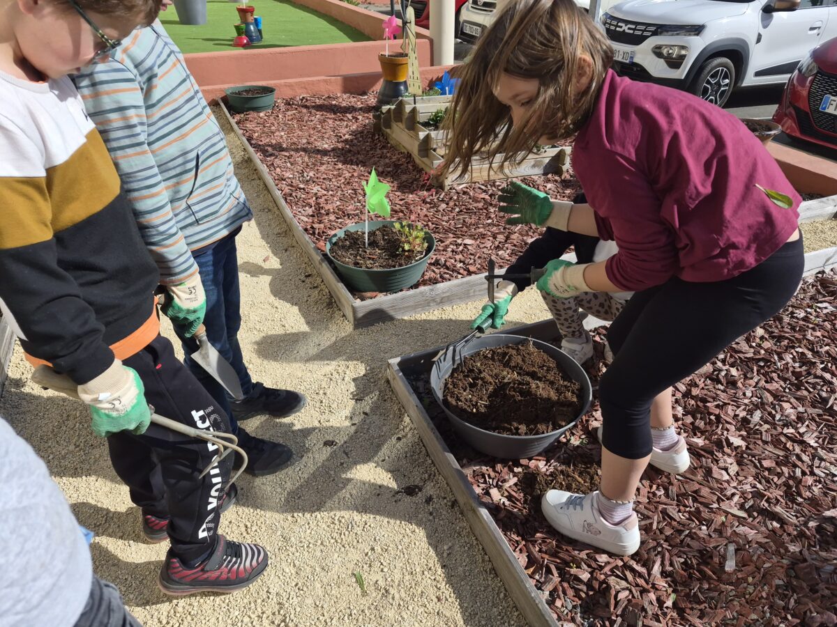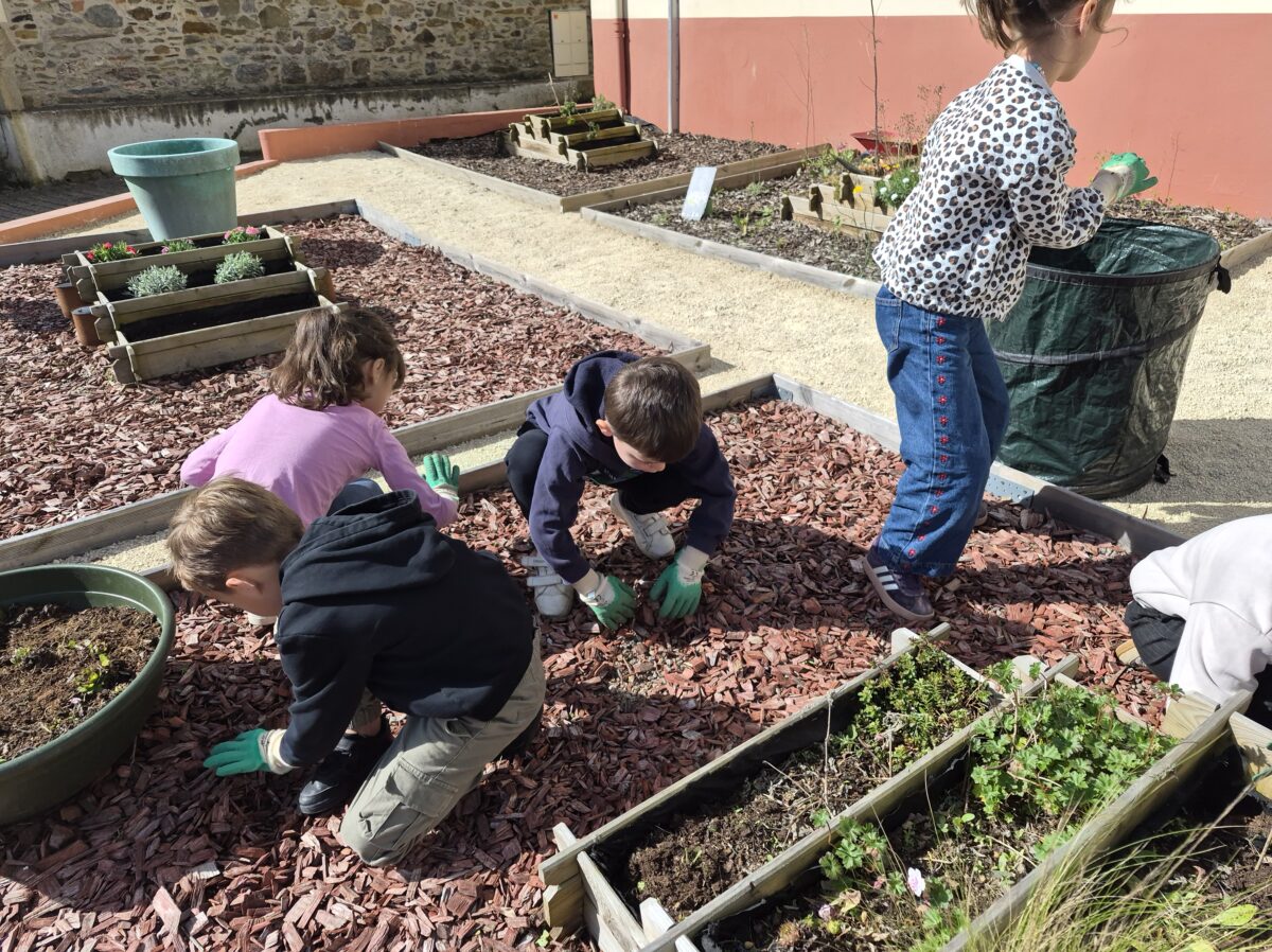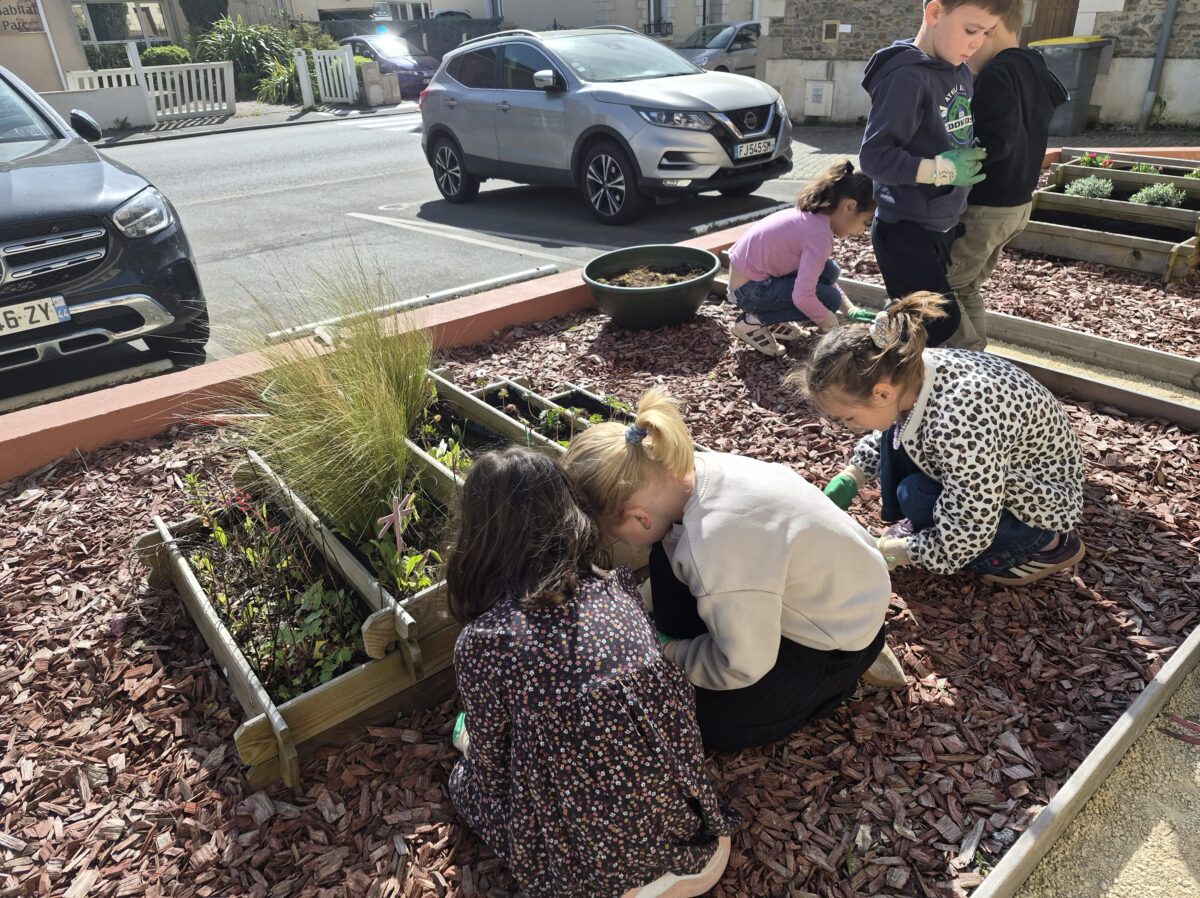 En fin de matinée, nous sommes allés désherber notre carré. Nous avons planté des bulbes et semé des graines. Il n’y a plus qu’à attendre !