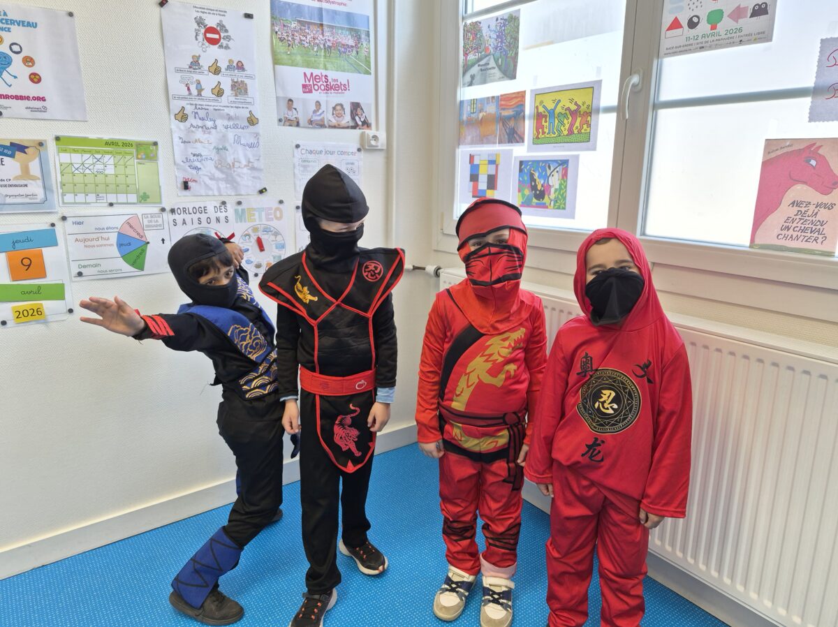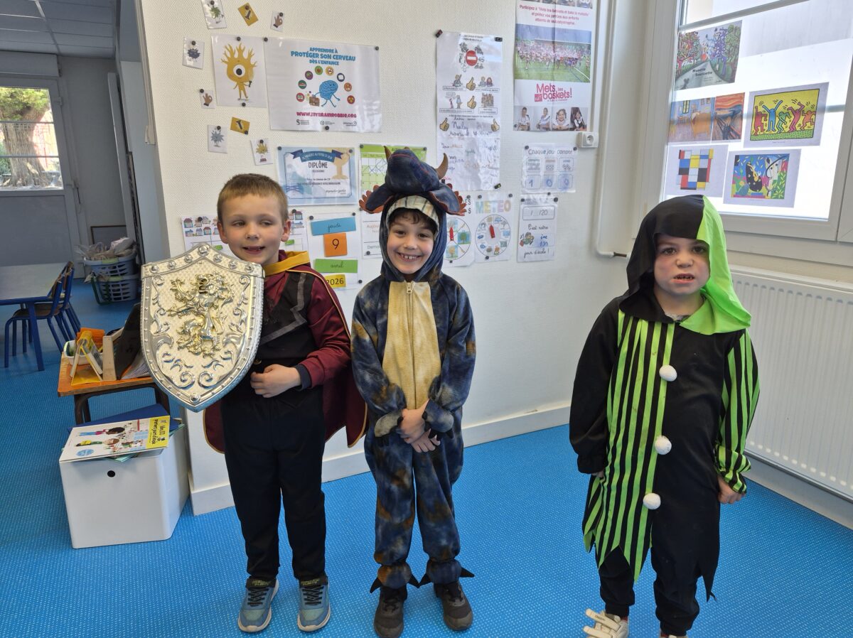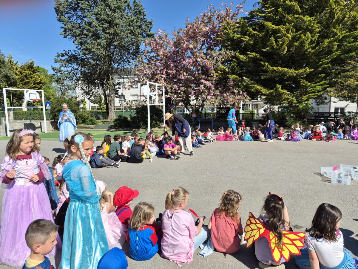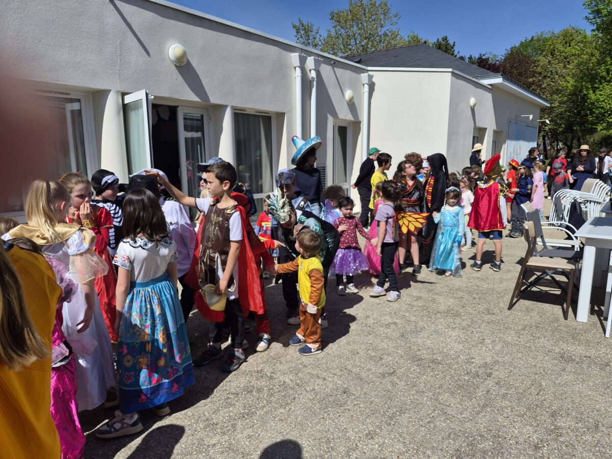 L’après-midi, pour clore cette semaine sans cartable, nous nous sommes déguisés pour le carnaval ! Nous avons défilé pour voir les personnes âgées et les résidents du foyer de vie. Nous avons dégusté les gâteaux confectionnés la veille. Ils étaient délicieux ! Nous avons également admiré la fresque collective de l’école.