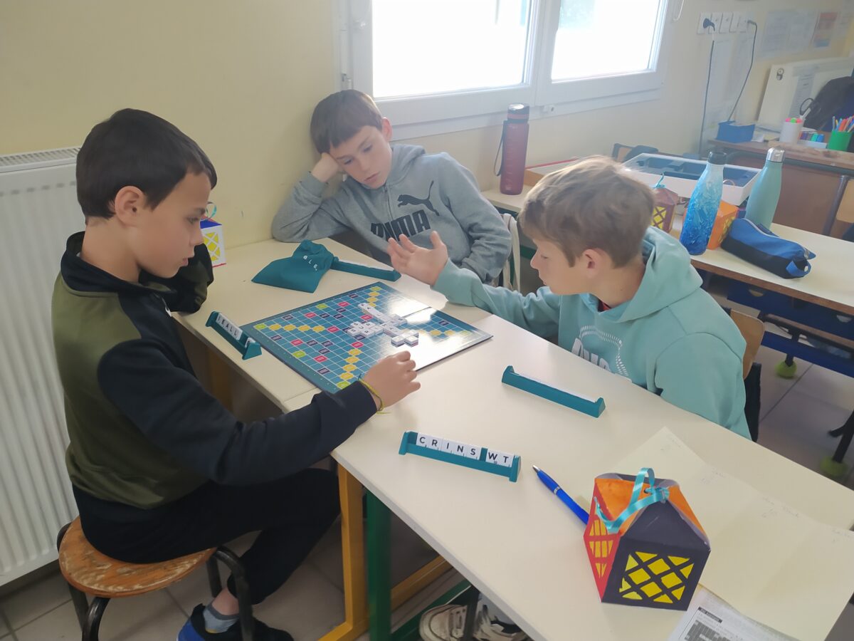 Nous avons débuté cette semaine par des jeux de société comme le Skyjo, le Scrabble, le Triominos, le Peti Bac et le Mastermind.