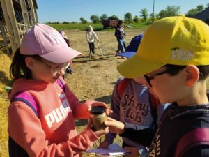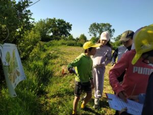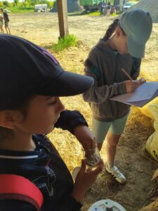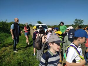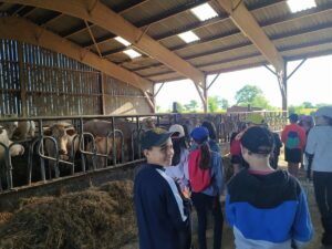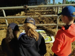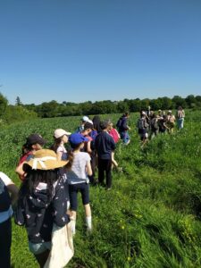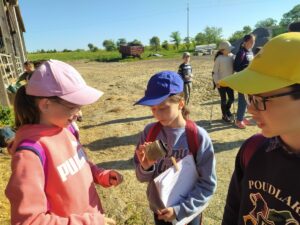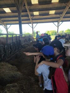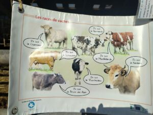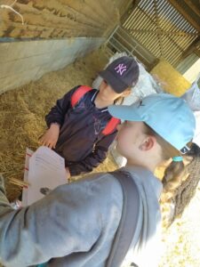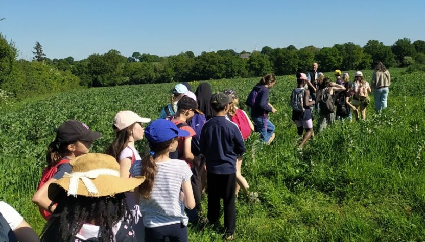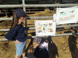 Stan et Karine nous ont accueillis dans leur ferme aux Touches. Nous avons eu le droit à une visite guidée de la ferme et des champs et un rallye « ferme » animé par Marianne. Au menu : découvertes sensorielles (toucher, ouïe), découverte de l’importance des haies, découverte des races de vaches…